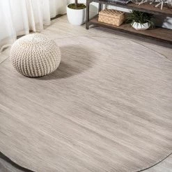 Ethan Modern Flatweave Light Gray 6 ft. 7 in. Solid Round Indoor/Outdoor Area Rug by JONATHAN Y