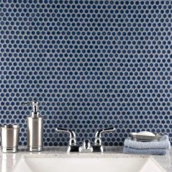 Hudson Penny Round Glossy Sapphire 12 in. x 12 in. Porcelain Mos (10.74 sq. ft./Case) by Merola Tile