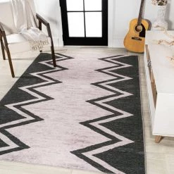 Rand Distressed Ticking Stripe Machine-Washable Navy/Ivory 9 ft. x 12 ft. Area Rug by JONATHAN Y