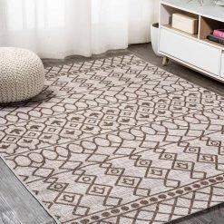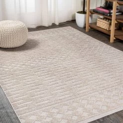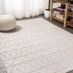 Xlendi High-Low Pile Moroccan Geometric Beige 8 ft. x 10 ft. Indoor/Outdoor Area Rug by JONATHAN Y