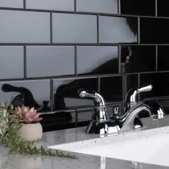 Crown Heights 3 in. x 6 in. Glossy Black Ceramic Wall Tile (6.03 sq. ft. /Case) by Merola Tile