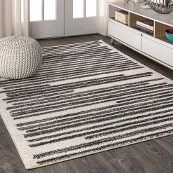 James Modern Border Stripe Orange/Cream 8 ft. x 10 ft. Indoor/Outdoor Area Rug by JONATHAN Y