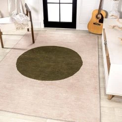 Cirkel Minimalist Geometric Dot Machine-Washable Cream/Olive 8 ft. x 10 ft. Area Rug by JONATHAN Y