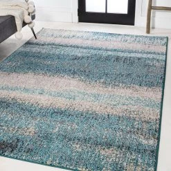 Contemporary Pop Cream/Turquoise 8 ft. x 10 ft. Modern Abstract Vintage Area Rug by JONATHAN Y