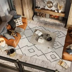 Inspired by vintage Beni Ourain Moroccan rugs, our modern version is power-loomed with a short pile. Diamonds and geometric forms are woven in black against a field of ivory; tassel fringes at each end are braided in traditional style. Add some Bohemian style to your home with this easy-care rug.