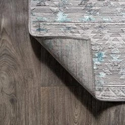 Inspired by the weathered tile designs of Morocco, this rug has a modern, coastal vibe. The deep turquoise, ivory and gray threads give the trellis design a faded, distressed effect. This unique rug’s overall pattern makes it perfect for homes with kids and pets. It’s the perfect centerpiece for a modern, contemporary, beach house or minimalist interior.