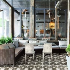Inspired by the weathered tile designs of Morocco, this rug has a modern, coastal vibe. The deep turquoise, ivory and gray threads give the trellis design a faded, distressed effect. This unique rug’s overall pattern makes it perfect for homes with kids and pets. It’s the perfect centerpiece for a modern, contemporary, beach house or minimalist interior.