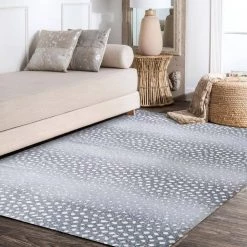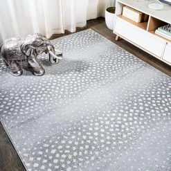 Animal print gets an update with this antelope pattern rug, woven in light gray and ivory creates a modern, abstract design on your floor. This pet-friendly rug’s busy pattern makes it ideal for a living room, dining room, kitchen, bedroom, entry or office. It’s the perfect centerpiece for a mid-century modern, contemporary, or traditional interior.