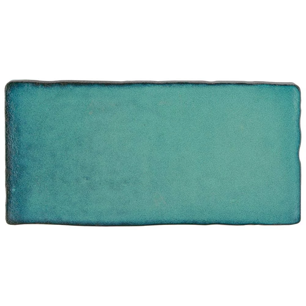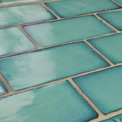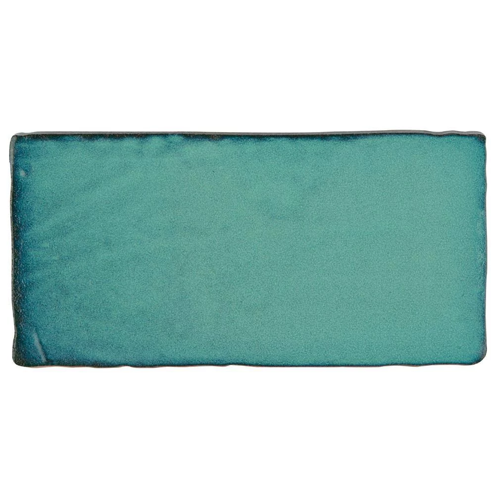 Bring unique vintage accents to your home with the Merola Tile Antic Special Lava Verde Ceramic Wall Tile. These smooth subway tiles feature uneven edges for a handmade look. The unique coloring, which features shades of deep seafoam green and gradually darkens to navy and brown around the edges, creates a rustic look. These glossy tiles feature slight variation in surface for added depth. The reactive glaze on this tile makes every piece unique, so you will never have two that are exactly the same. This reactive glazing technique may cause high variation between dye lots. Please expect variation in color between orders and from what is pictured. Use these subway tiles with many of our other products, including those in the Antic collection, to complete an elegant look.