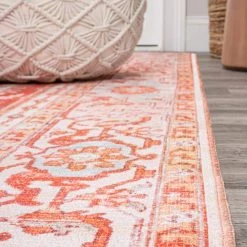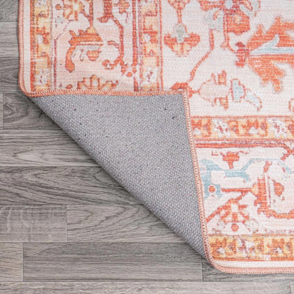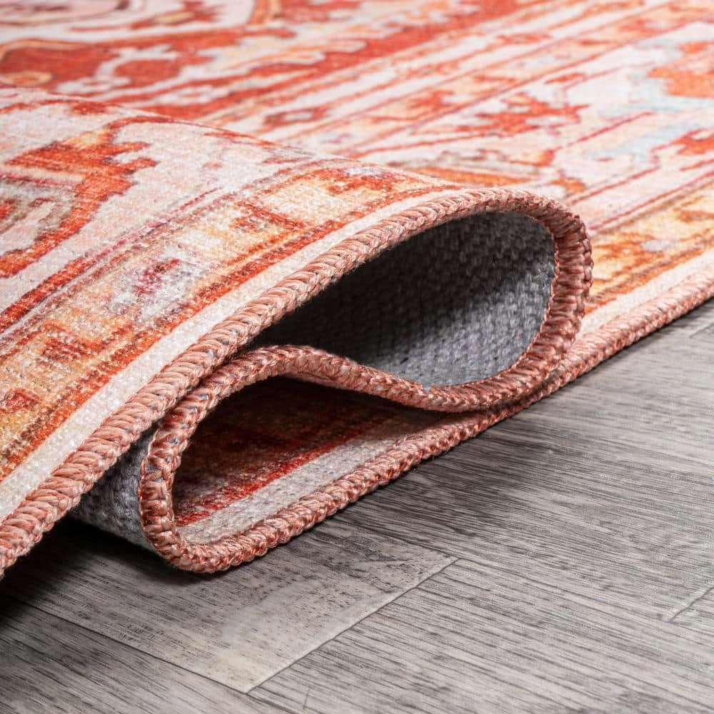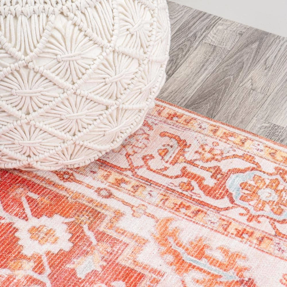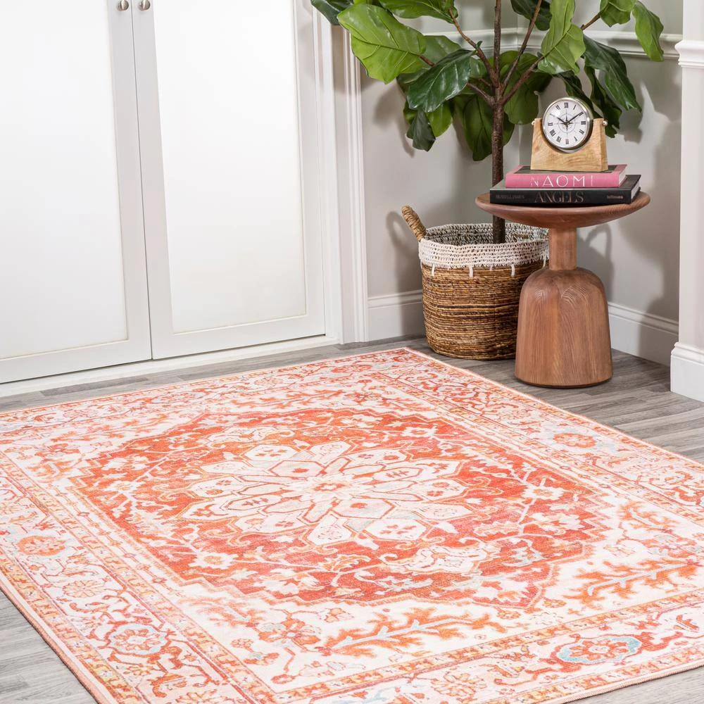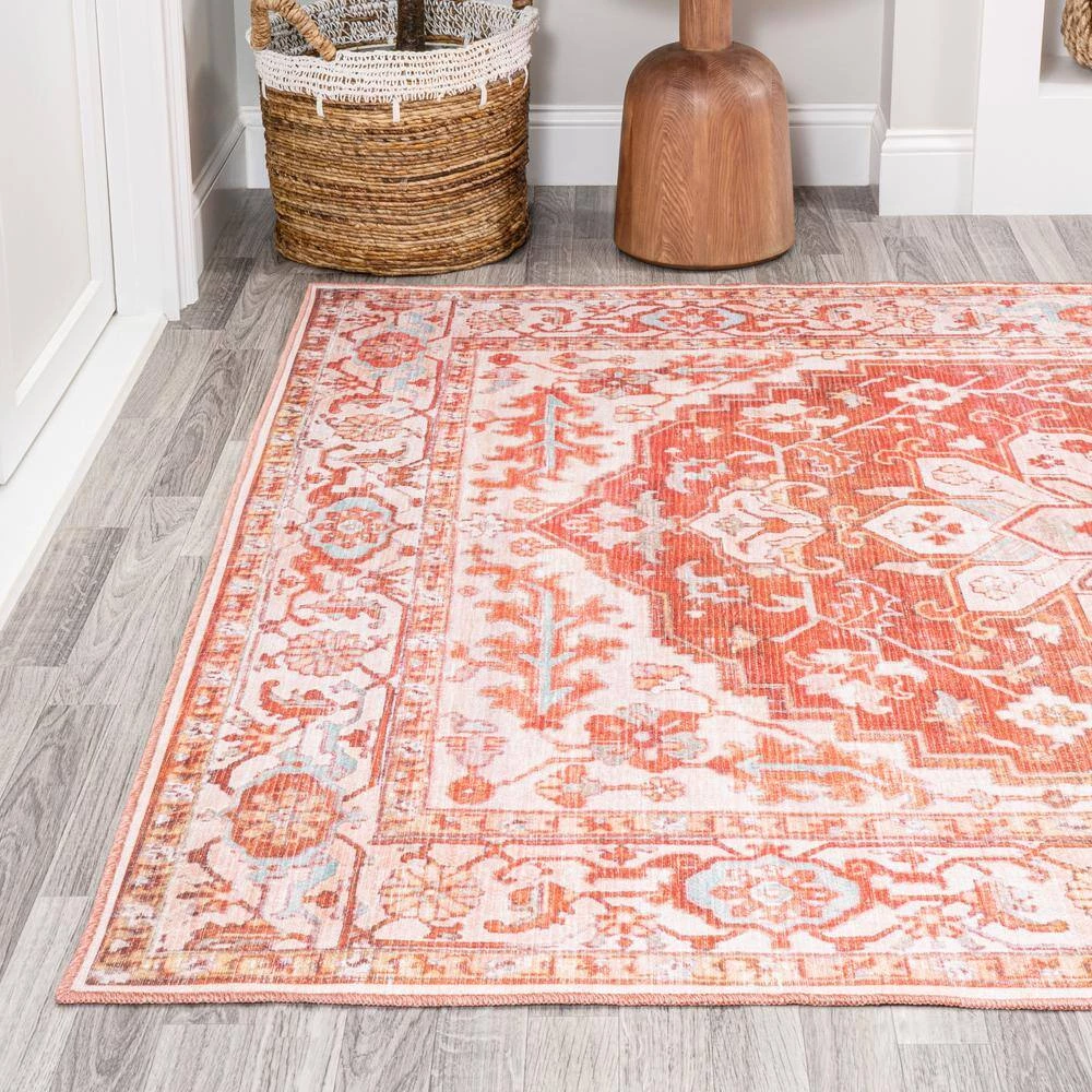 An ornate medallion in the center of this design recalls traditional Persian rugs, but updated colors add a modern Bohemian-inspired twist to the classic design. Ivory mingled with shades of clay creates a vintage, distressed look. Use this stylish rug in a city apartment or coastal home; dress up a bedroom, living room, dining room, entry, or porch.