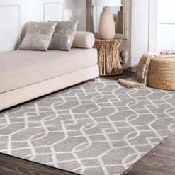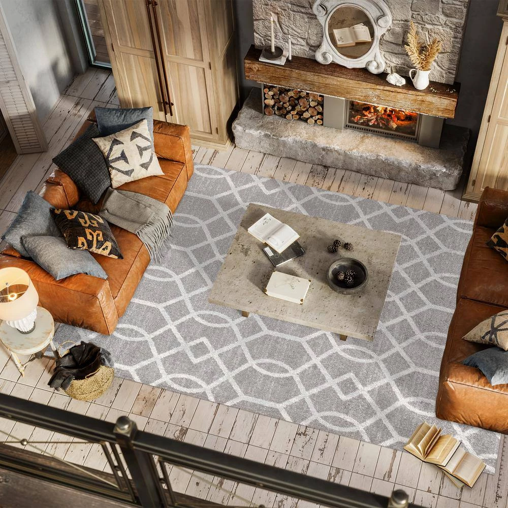 Our geometric trellis design is inspired by gray and white Moroccan tile patterns – the perfect complement to traditional, modern and coastal interiors. The ogee trellis in ivory is backed with mingled tones of blue to give this rug a vintage look. This family-friendly rug is ideal for the living room, kitchen, dining room, bedroom or entry.