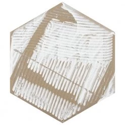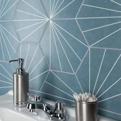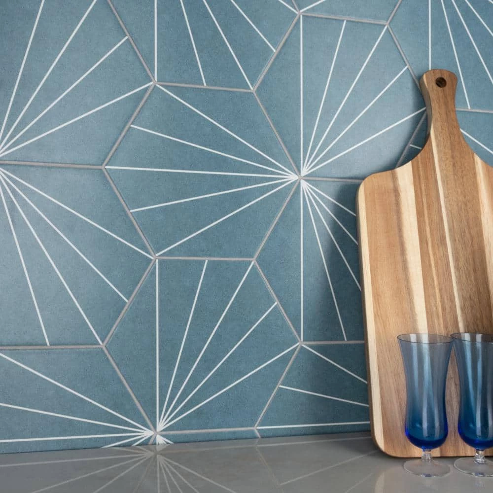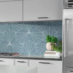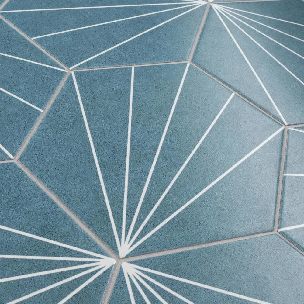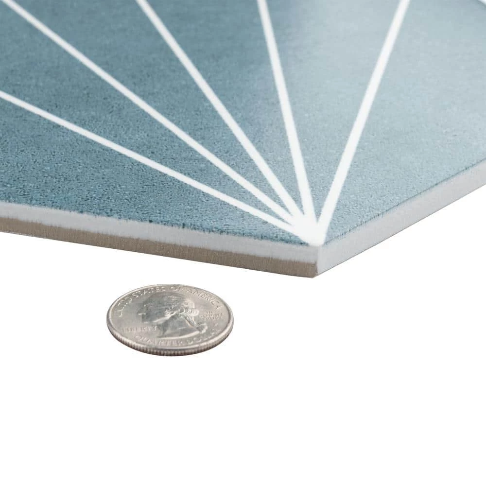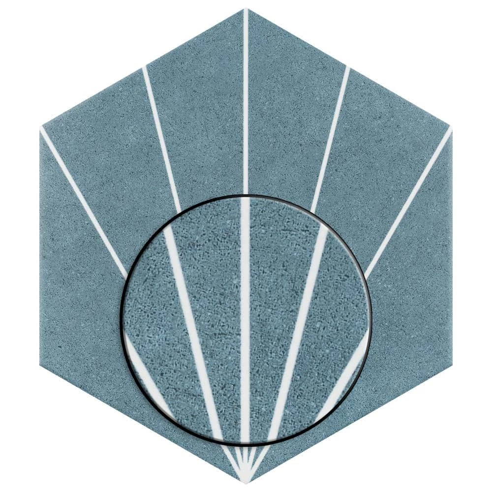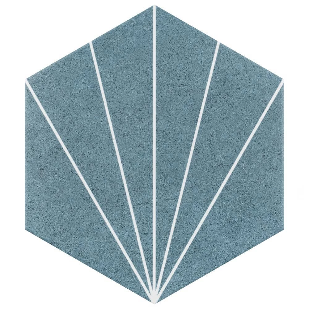 Blending subtle and clean lines, our Aster Hex Azul 8-5/8 in. x 9-7/8 in. Porcelain Floor and Wall Tile offers geometric minimalism reminiscent of mid-century modern design. This hexagon shaped tile transforms any space into a work of art through linear starburst patterns that when laid out, intertwine to create captivating designs. Set on a smooth, satin base glaze, this porcelain tile features a soft blue color tone accented by bright white lines that extend across the surface. To add further contrast and dimension to the design, this floor and wall tile features speckled pattern variations in varying dark blue color tones. This trendsetting display of geometric pattern is visually appealing and versatile, and can be laid out in various different patterns to create a one-of-a-kind installation. Its impervious and frost-resistant features make this an ideal choice for indoor and outdoor installations, including backsplashes, kitchens, bathrooms, showers, entryways and patios. This tile is a perfect choice on its own or paired with other products in the Aster Collection. Tile is the better choice for your space. This tile is made from natural ingredients, making it a healthy choice as it is free from allergens, VOCs, formaldehyde and PVC.