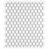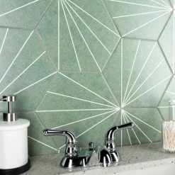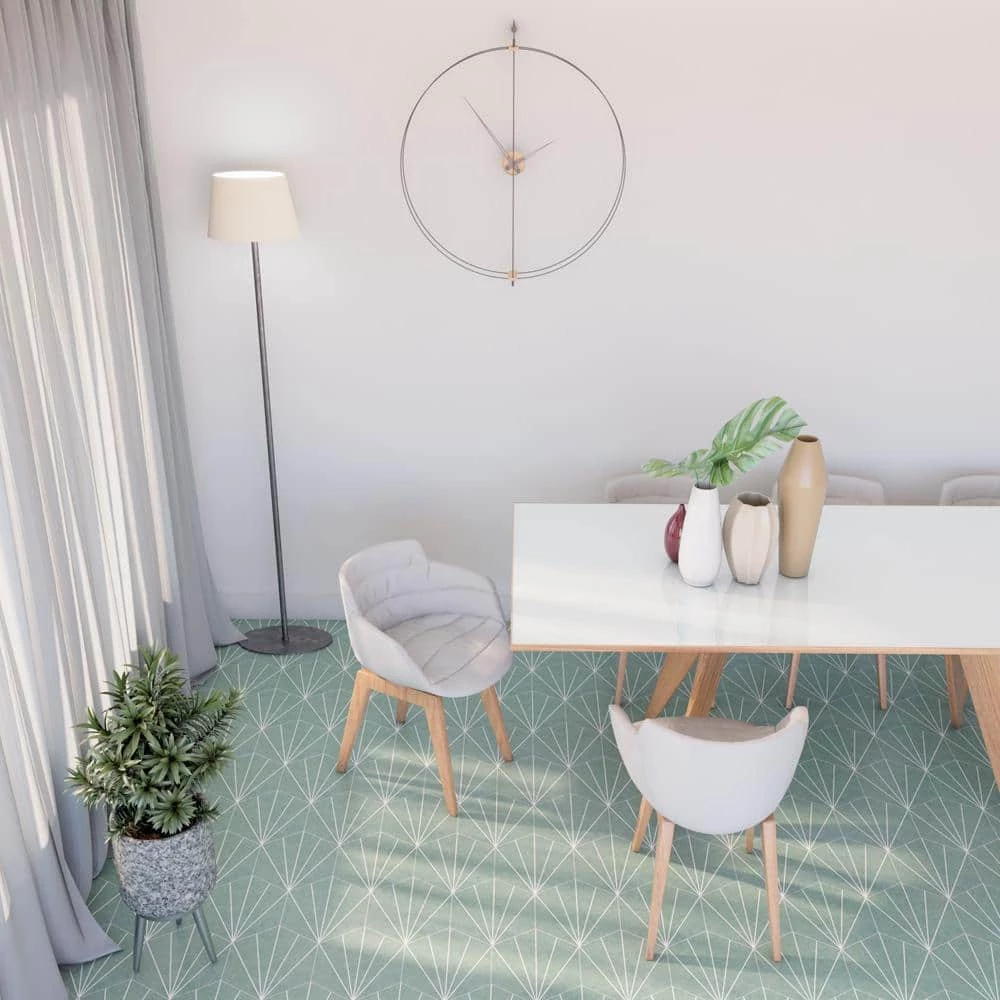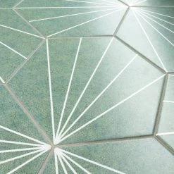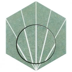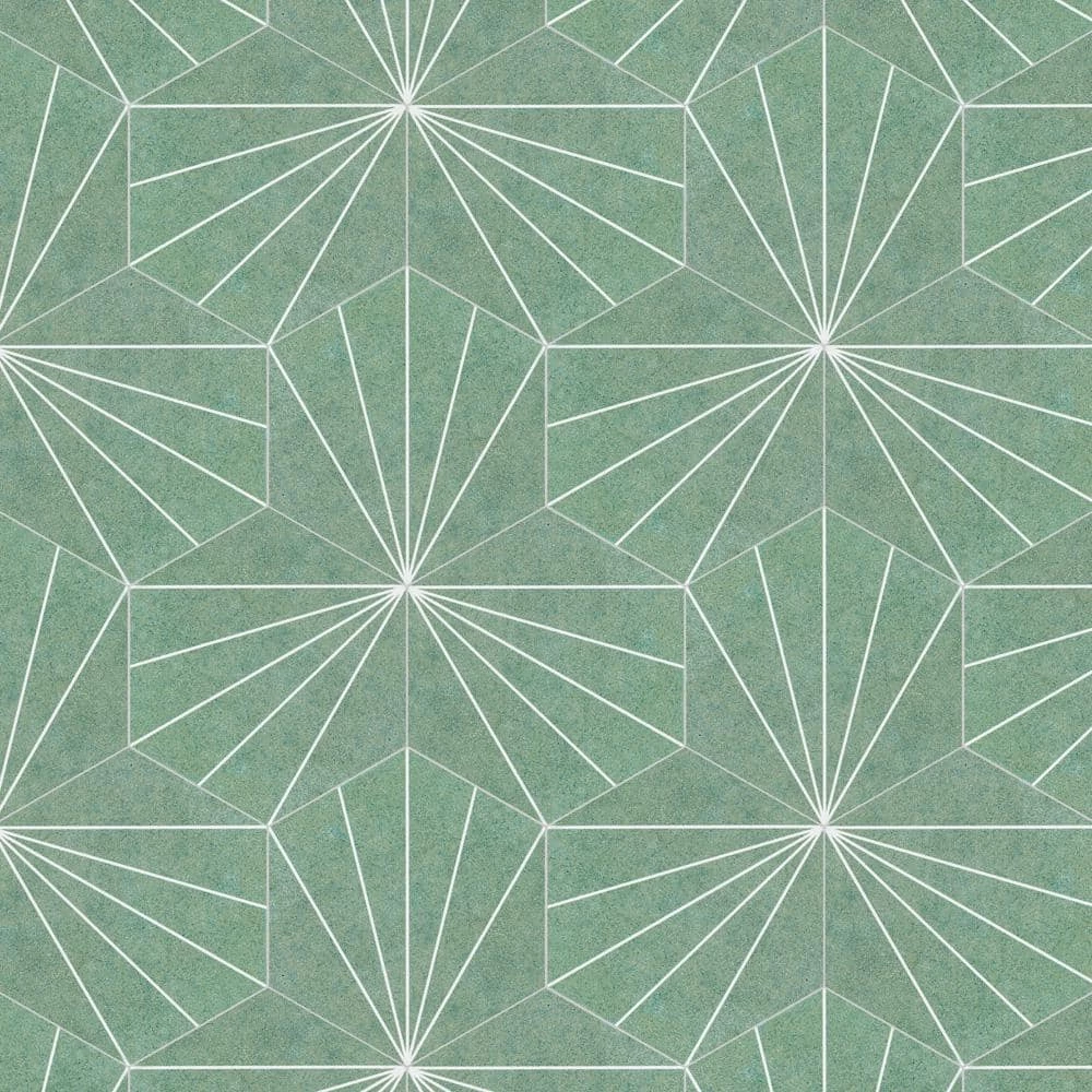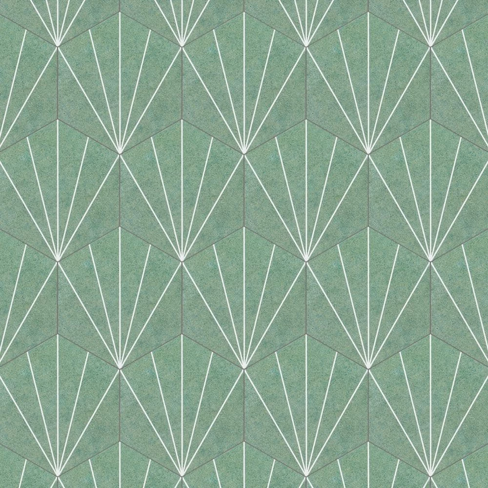 Blending subtle and clean lines, our Aster Hex Verde 8-5/8 in. x 9-7/8 in. Porcelain Floor and Wall Tile offers geometric minimalism reminiscent of mid-century modern design. This hexagon shaped tile transforms any space into a work of art through linear starburst patterns that when laid out, intertwine to create captivating designs. Set on a smooth, satin base glaze, this porcelain tile features a soft green color tone accented by bright white lines that extend across the surface. To add further contrast and dimension to the design, this floor and wall tile features speckled pattern variations in varying dark blue color tones. This trendsetting display of geometric pattern is visually appealing and versatile, and can be laid out in various different patterns to create a one-of-a-kind installation. Its impervious and frost-resistant features make this an ideal choice for indoor and outdoor installations, including backsplashes, kitchens, bathrooms, showers, entryways and patios. This tile is a perfect choice on its own or paired with other products in the Aster Collection. Tile is the better choice for your space. This tile is made from natural ingredients, making it a healthy choice as it is free from allergens, VOCs, formaldehyde and PVC.