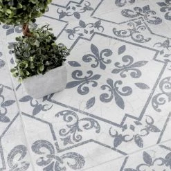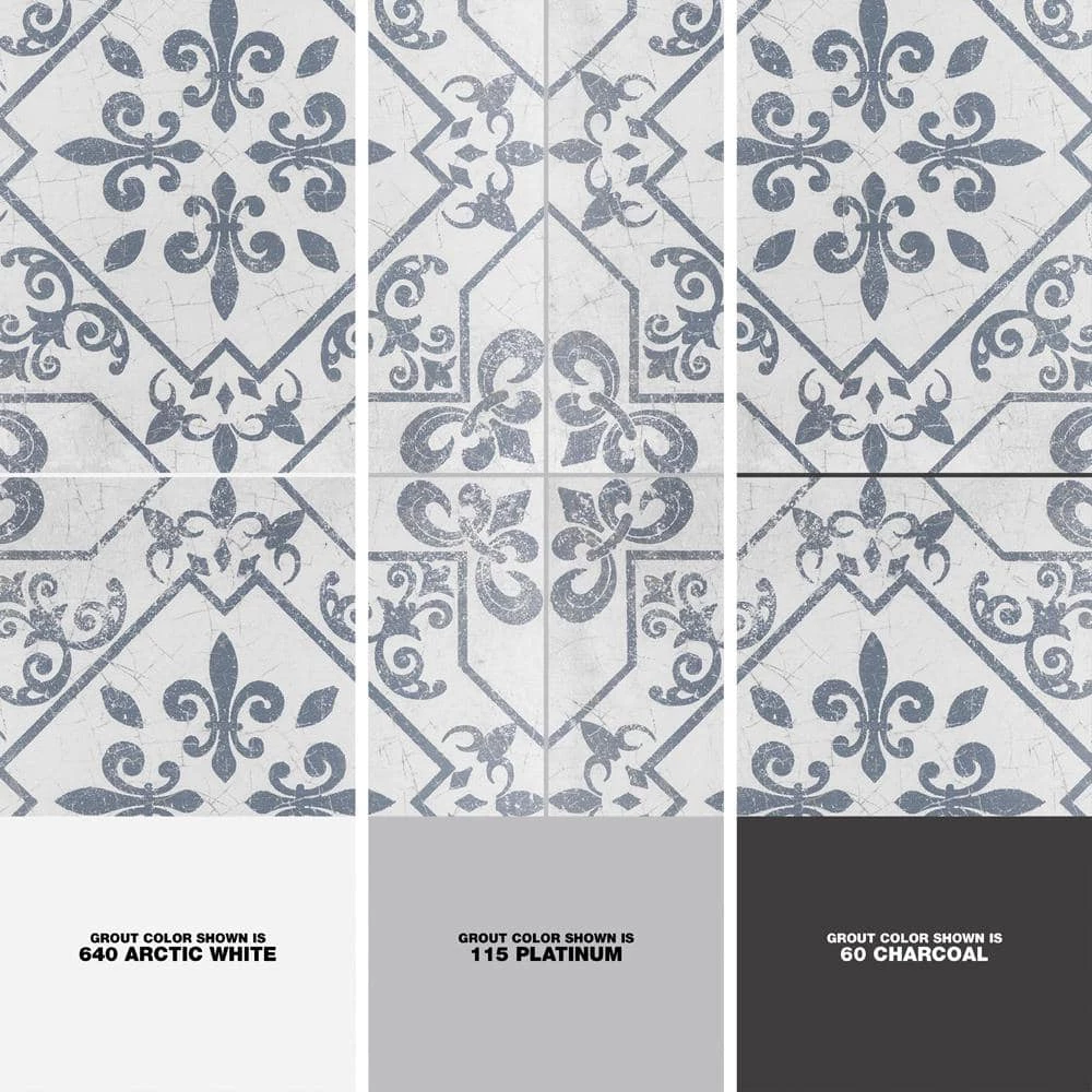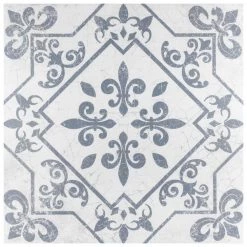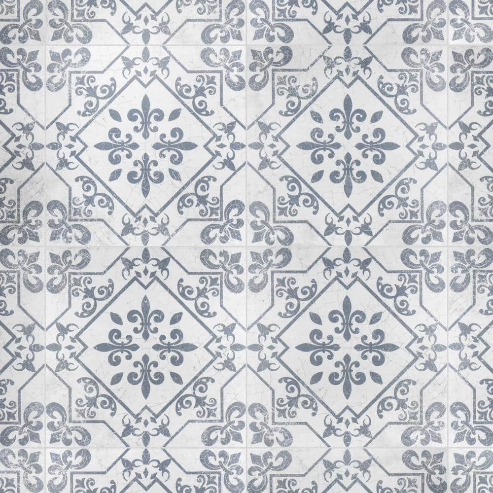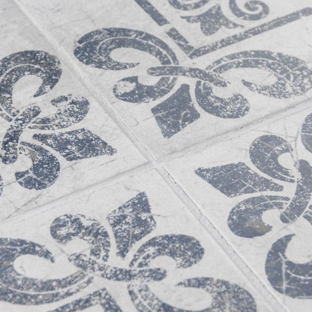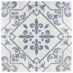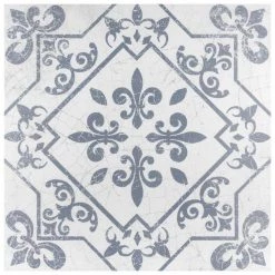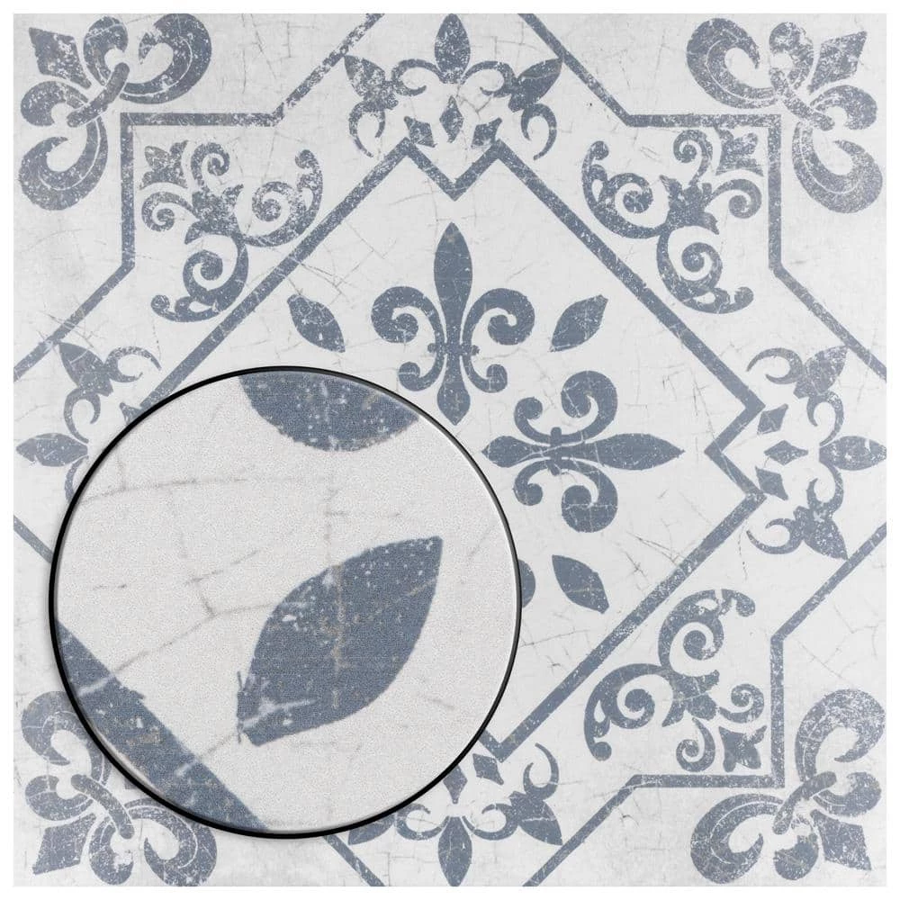 Vintage European design was the inspiration behind the Merola Tile Atlantic Azul Ceramic Floor and Wall Tile. With a crackling cool white surface, this Spanish tile rivals antique, old-world design. Slate blue lines diagonally intersect, creating sharp angles and offset framing patterns. Set within the center diamond are four fleur-de-lis configurations, creating an appealing, elegant centered design. Flourishing patterns in the four corners further express its encaustic inspiration. All of these patterns are distressed, convincing that this tile is truly aged. The medium-sheen finish further convinces that this is an age-old tile. This durable tile is suitable for most interior installations, including kitchens, bathrooms, and showers. Tile is the better choice for your space. This tile is made from natural ingredients, making it a healthy choice as it is free from allergens, VOCs, formaldehyde and PVC.