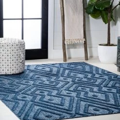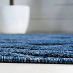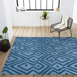 Inspired by vintage Moroccan rugs, our indoor/outdoor rug adds modern tribal style to your porch, patio or sunroom. The classic Moroccan pattern has a geometric design of navy diamonds, dots and zigzags. Mingled threads give this rug a handwoven, vintage vibe that’s perfect for an entry, kitchen, hallway, living room or bedroom too. The pet-friendly and kid-proof flatweave design makes it easy to clean, and perfect for the beach house.