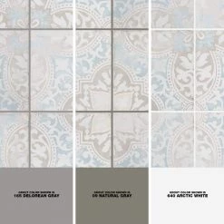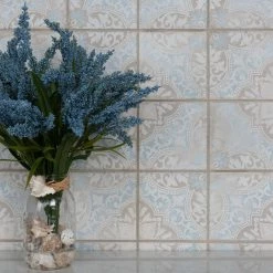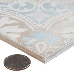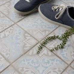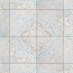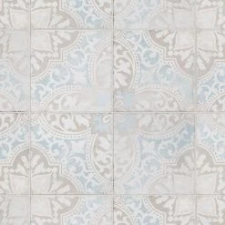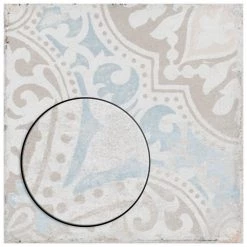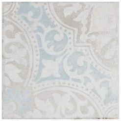 Modern and vintage design elements blend together to create our Barcelona Decor Montjuic Porcelain Floor and Wall Tile. Featuring a worn cement appearance, this tile is a subtle statement piece created by floral motifs in faded pastel shades of light blue, beige and brown set on a textured antique white base glaze. With a delicate color palette and realistic imitations of scuffs and spots, this encaustic inspired tile evokes a loved, worn and century-old appearance with a chic modern edge. Available in six print variations that are randomly scattered throughout each case, the variation throughout each tile mimics an authentic aged appearance. Its impervious, frost-resistant and durable features make this tile and ideal choice for both indoor and outdoor commercial and residential installations including, backsplashes, kitchens, bathrooms, showers, entryways and patios. This tile is a perfect choice on its own or paired with other products in the Barcelona Collection. Tile is the better choice for your space. This tile is made from natural ingredients, making it a healthy choice as it is free from allergens, VOCs, formaldehyde and PVC.