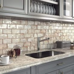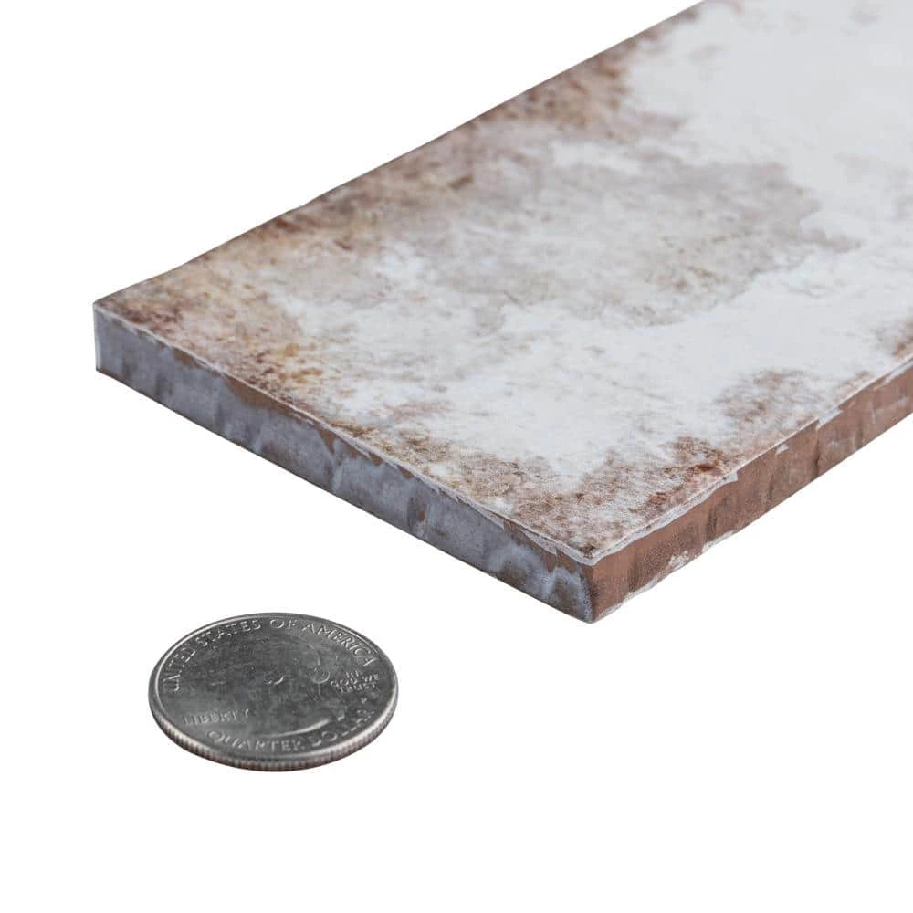 Blending modern and vintage design elements, our Biarritz Beige 3 in. x 6 in. Ceramic Subway Wall Tile offers a casual urban appeal. Featuring a worn appearance, this tile is a subtle statement piece created by distressed patterns in a beige color tone. With slight undulation and a mixed finish, this subway tile offers a handmade appearance through subtle imperfections that make it look like each tile was handcrafted. Available in eighteen print variations that are randomly scattered throughout each case, the variation throughout each tile mimics an authentic aged appearance. Its glazed feature makes this tile an ideal choice for indoor wall installations including, kitchen backsplashes bathroom showers, and fireplace facades. This tile is a perfect choice on its own or paired with other products in the Biarritz Collection. Tile is the better choice for your space. This tile is made from natural ingredients, making it a healthy choice as it is free from allergens, VOCs, formaldehyde and PVC.