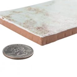 Blending modern and vintage design elements, our Biarritz Green 3 in. x 6 in. Ceramic Subway Wall Tile offers a casual urban appeal. Featuring a worn appearance, this tile is a subtle statement piece created by distressed patterns in a seafoam green color tone. With slight undulation and a mixed finish, this subway tile offers a handmade appearance through subtle imperfections that make it look like each tile was handcrafted. Available in eighteen print variations that are randomly scattered throughout each case, the variation throughout each tile mimics an authentic aged appearance. Its glazed feature makes this tile an ideal choice for indoor wall installations including, kitchen backsplashes bathroom showers, and fireplace facades. This tile is a perfect choice on its own or paired with other products in the Biarritz Collection. Tile is the better choice for your space. This tile is made from natural ingredients, making it a healthy choice as it is free from allergens, VOCs, formaldehyde and PVC.