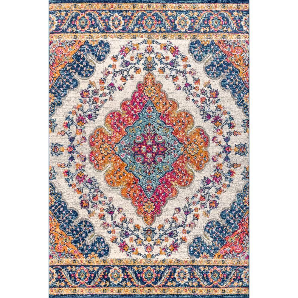 Boho chic in a color palette that would suit an urban retreat or beach bungalow, the modern coloration of this classic design is a statement maker in any space. Power loomed using the softest polypropylene available, its durability matches its beauty. Try it in a living space for added interest, or in a bedroom to mitigate noise and add a cozy feel.