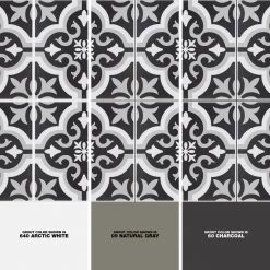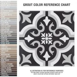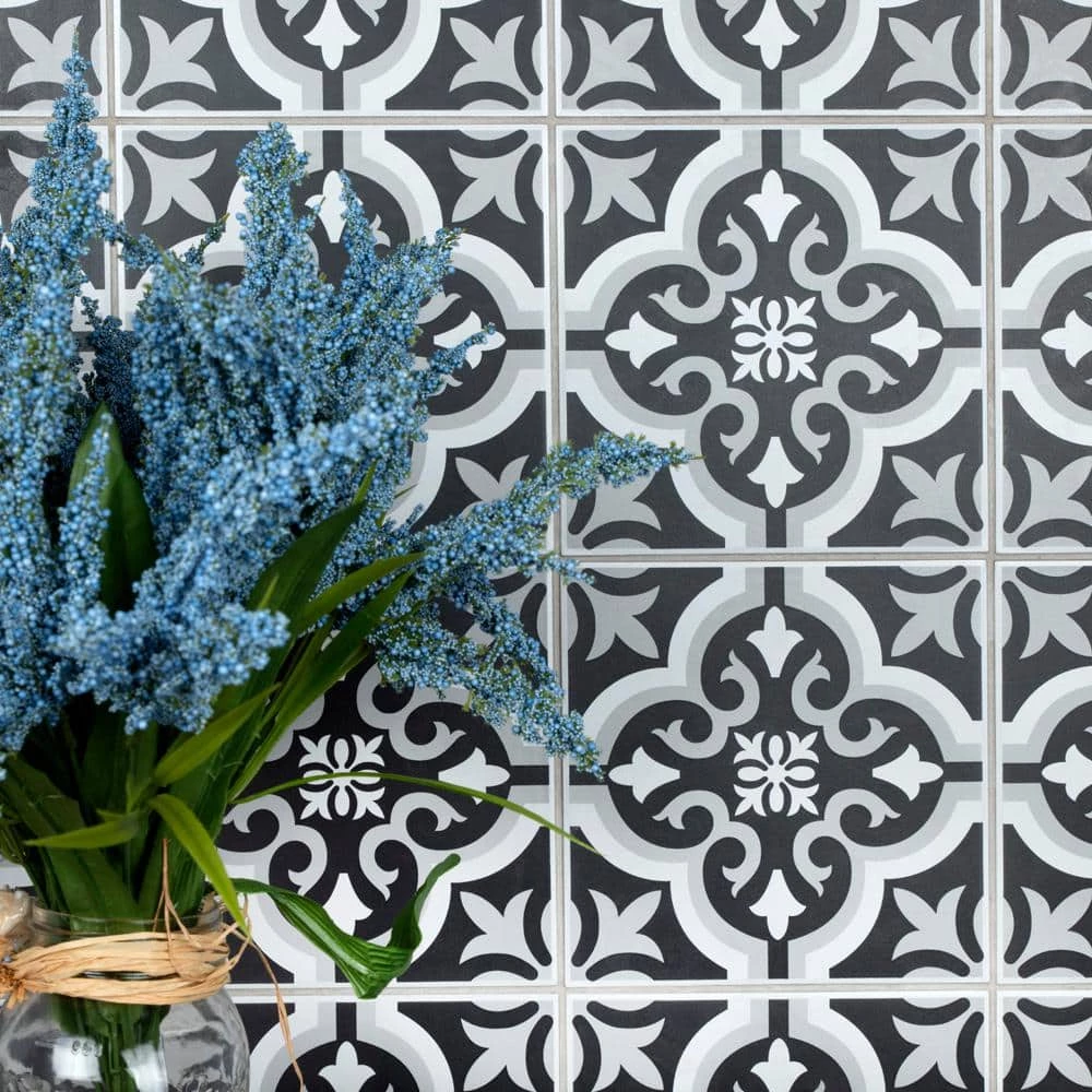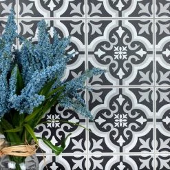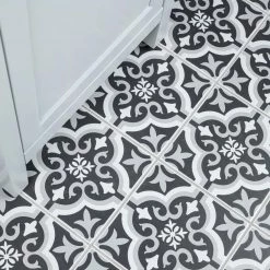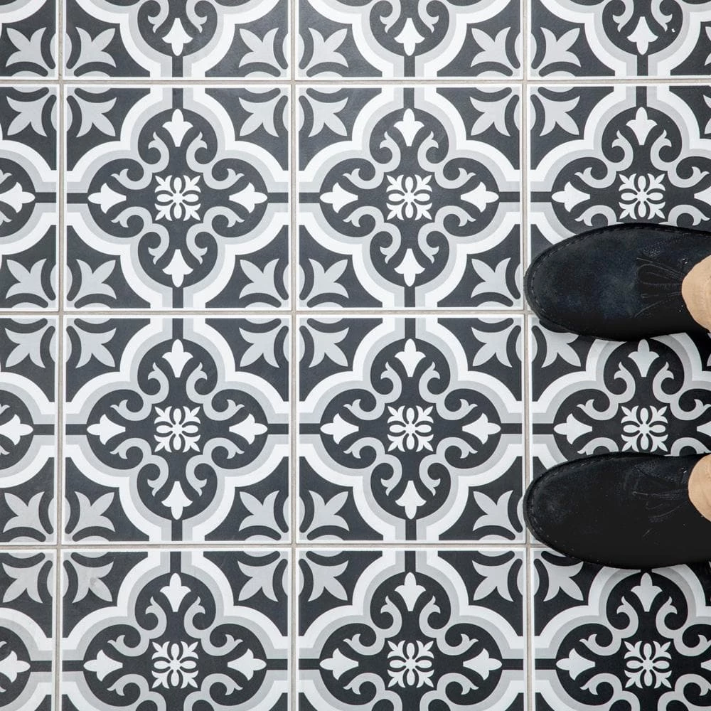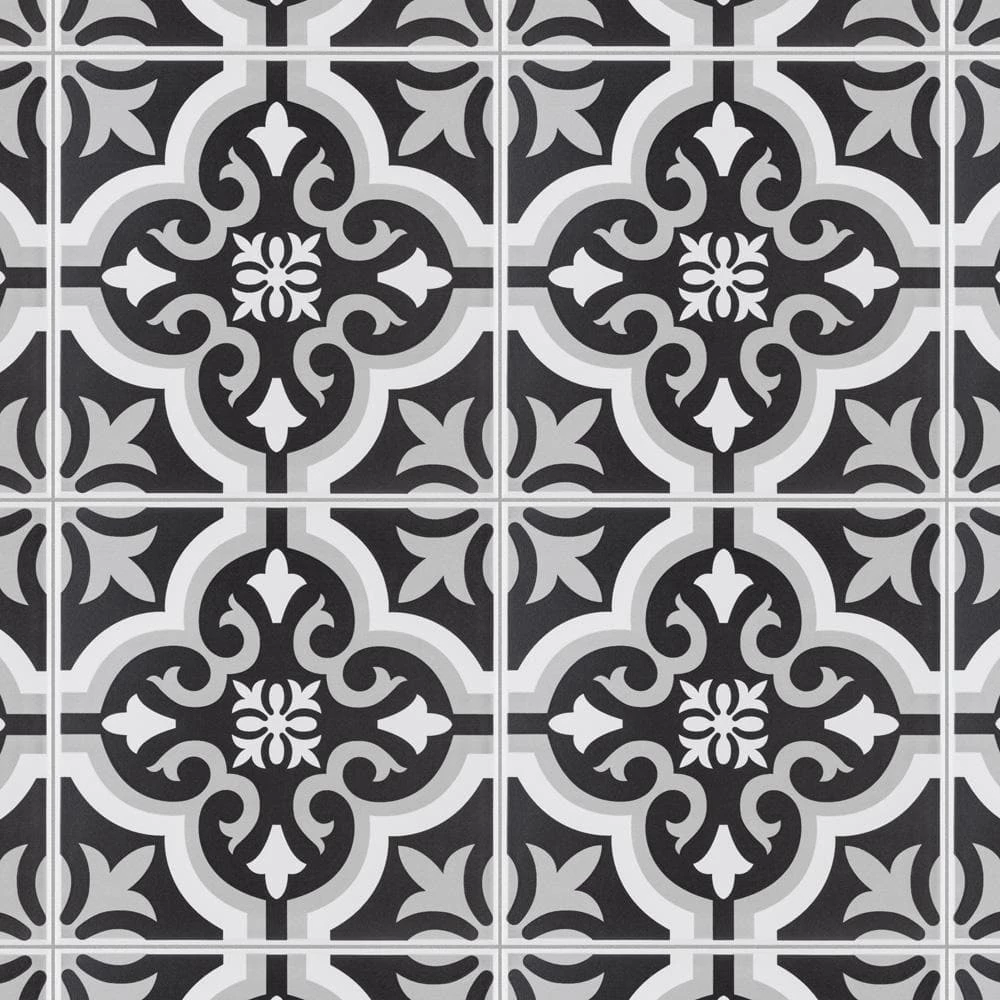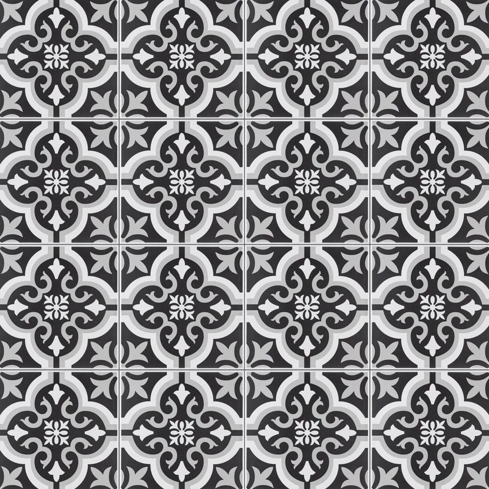 Capturing the beauty of artisanal cement tile, our Merola Tile Braga Classic II Encaustic 7-3/4 in. x 7-3/4 in. Ceramic Floor and Wall Tile is a gorgeous tribute to encaustic design. Set on a charcoal black base glaze, this tile features floral old-world patterns that frame dueling arcs at the center in varying shades of white and ash gray, offering contrast and dimension to the decoration. With a floral, geometric pattern and slightly textured surface, this tile adds a unique touch that can blend into virtually any design theme, ranging from modern projects to traditional installations. This tile is an excellent choice for most interior installations, including showers, kitchens and backsplashes. Tile is the better choice for your space. This tile is made from natural ingredients, making it a healthy choice as it is free from allergens, VOCs, formaldehyde and PVC.
