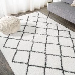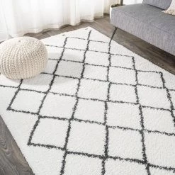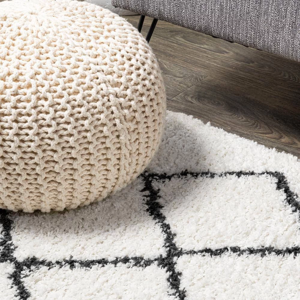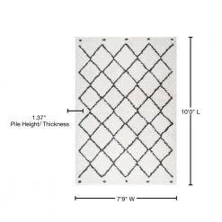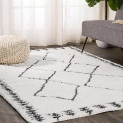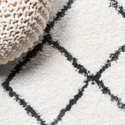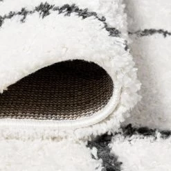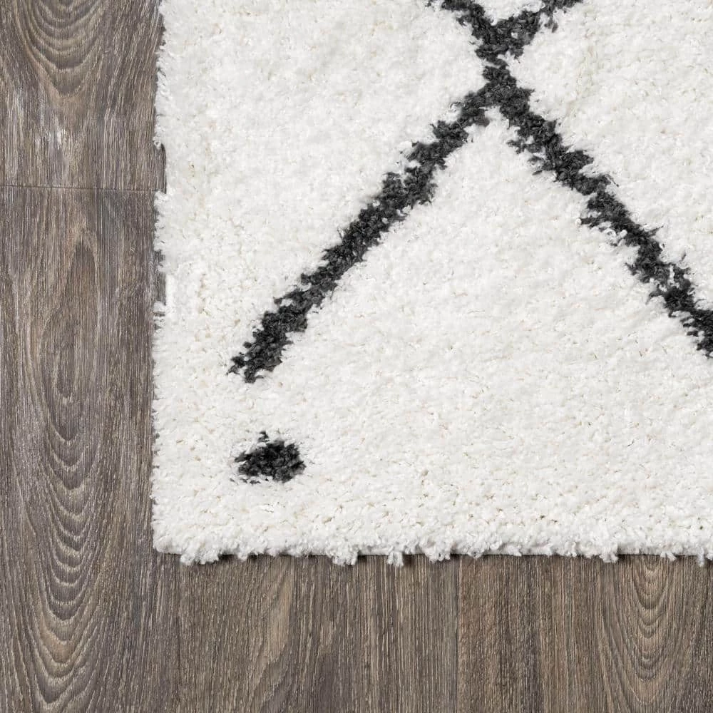 Inspired by vintage Beni Ourain Moroccan rugs, our soft and fluffy shag yarns make it easy to go barefoot. The classic Moroccan pattern has deep black diamonds on a field of ivory. Anchor your Bohemian space; add softness to a bedroom, living room, or cozy reading nook; this is a low-pile shag rug with timeless style.