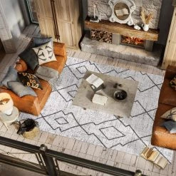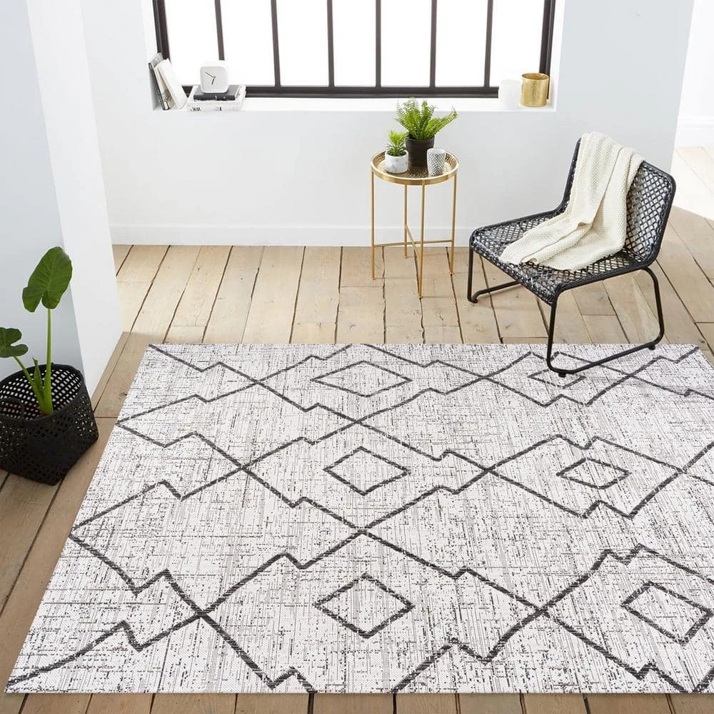 Moroccan influences abound in the geometric design of our tribal-inspired rug. The traditional diamond trellis pattern has the handwoven look popular in mid-century modern interiors. Add graphic impact to a modern living room, dining room, bedroom, kitchen or entry, and create your Boho-chic story with this easy-care rug.