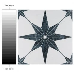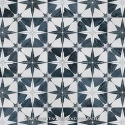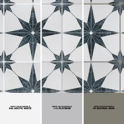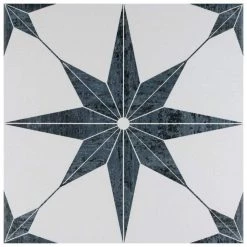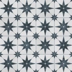 Blending texture and pattern, our Cassis Stella Black 9-3/4″ x 9-3/4″ Porcelain Floor and Wall Tile mimics the natural appearance of distressed wood and timeless old-world beauty. This square porcelain tile features a large geometric star pattern in faded charcoal black wood tones. Composed of rich detail and a textured, mixed finish surface, this floor and wall tile features stunningly realistic woodgrains and striations for additional visual dimension. Available in 10 print variations that are randomly scattered throughout each case, this porcelain tile can be laid out in various different patterns to create a truly unique installation. Its impervious and frost-resistant features make this an ideal choice for indoor and outdoor residential installations including, including backsplashes, bathroom floors and walls, showers, kitchen floors and walls, fireplaces and patios. Tile is the better choice for your space. This tile is made from natural ingredients, making it a healthy choice as it is free from allergens, VOCs, formaldehyde and PVC.