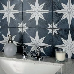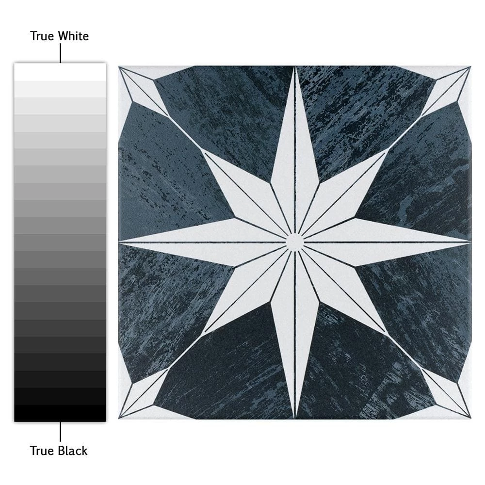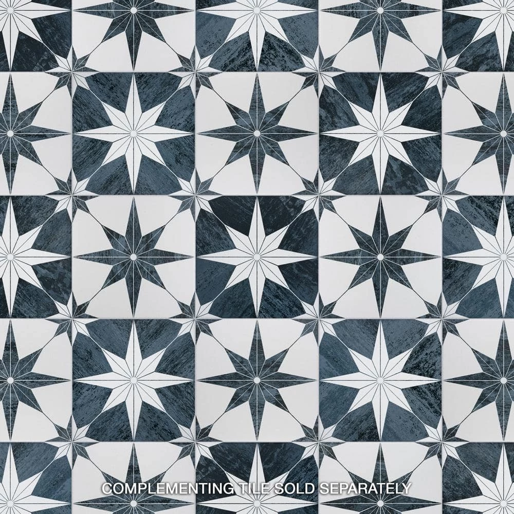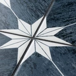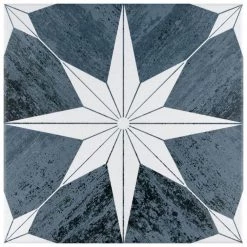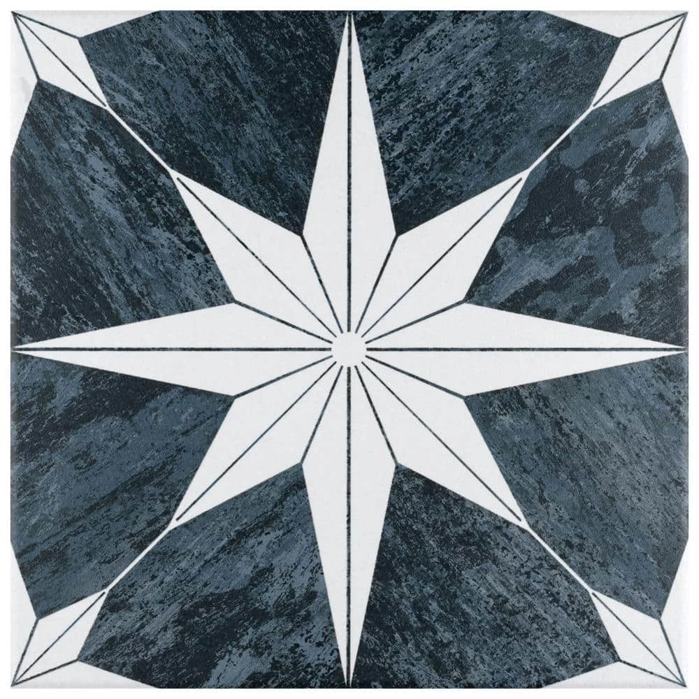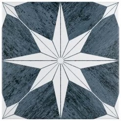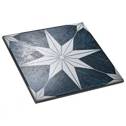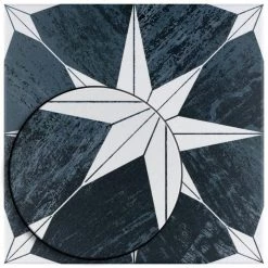 Blending texture and pattern, our Cassis Stella Black Night 9-3/4 in. x 9-3/4 in. Porcelain Floor and Wall Tile mimics the natural appearance of distressed wood and timeless old-world beauty. This square porcelain tile features a large geometric star pattern in faded charcoal black and light beige wood tones. Composed of rich detail and a textured, mixed finish surface, this floor and wall tile features stunningly realistic woodgrains and striations for additional visual dimension. Available in 10 print variations that are randomly scattered throughout each case, this porcelain tile can be laid out in various different patterns to create a truly unique installation. Its impervious and frost-resistant features make this an ideal choice for indoor and outdoor residential installations including, including backsplashes, bathroom floors and walls, showers, kitchen floors and walls, fireplaces and patios. Tile is the better choice for your space. This tile is made from natural ingredients, making it a healthy choice as it is free from allergens, VOC’s, formaldehyde and PVC.