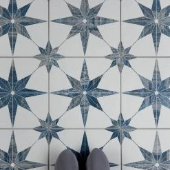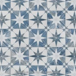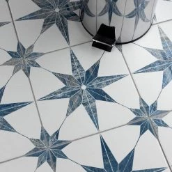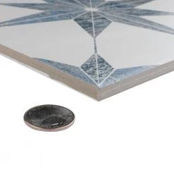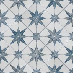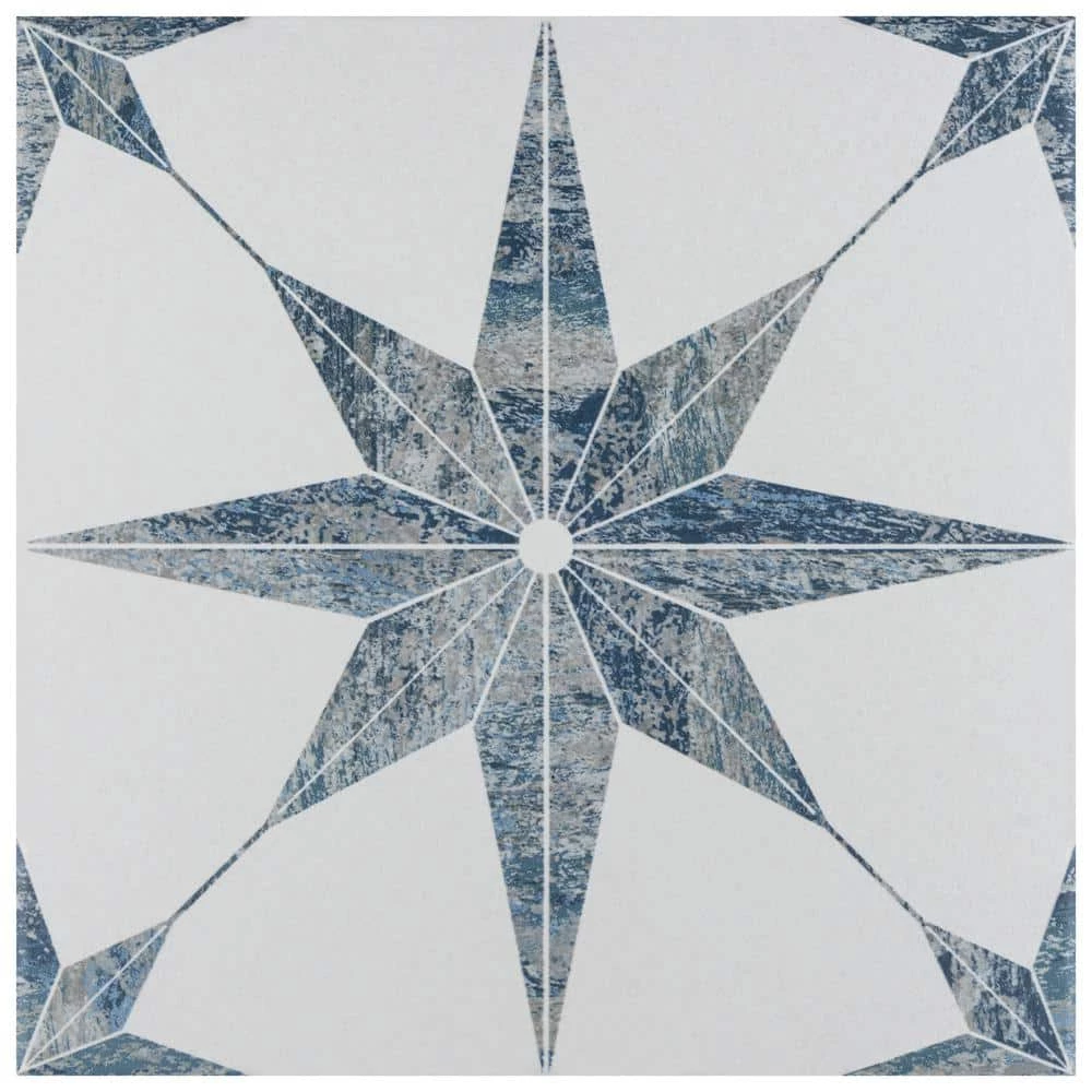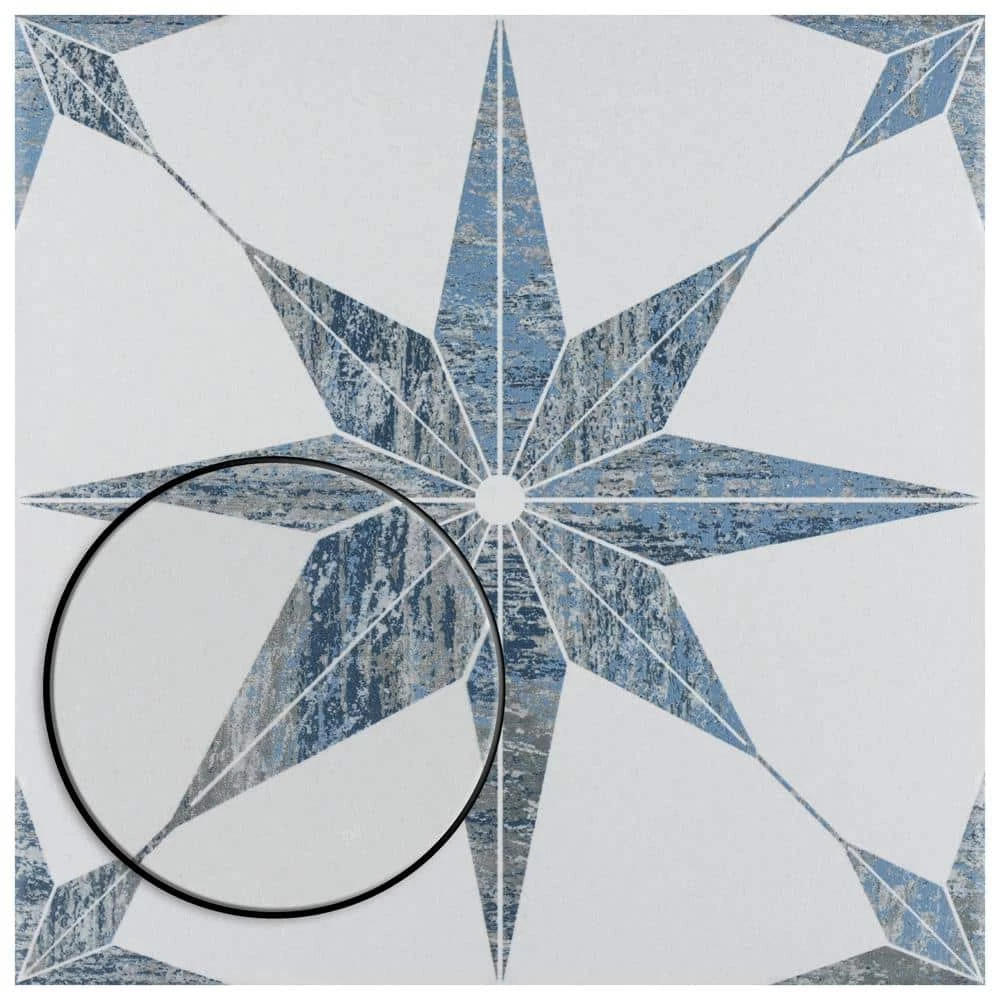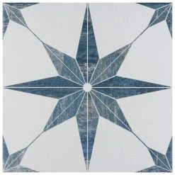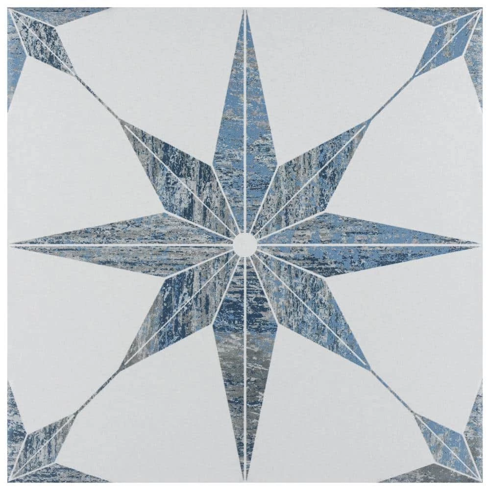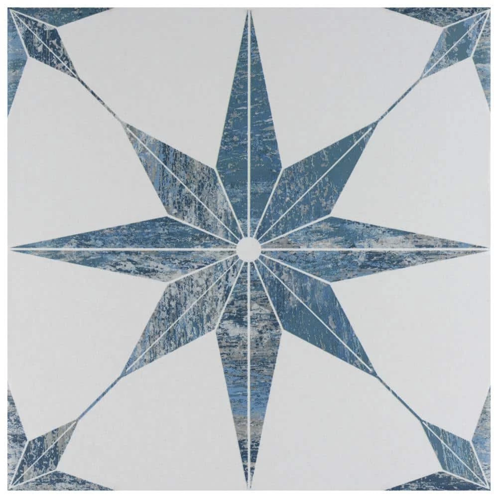 Blending texture and pattern, our Cassis Stella Blue 9-3/4 in. x 9-3/4 in. Porcelain Floor and Wall Tile mimics the natural appearance of distressed wood and timeless old-world beauty. This square porcelain tile features a large geometric star pattern in faded denim blue and light grey wood tones. Composed of rich detail and a textured, mixed finish surface, this floor and wall tile features stunningly realistic woodgrains and striations for additional visual dimension. Available in 10 print variations that are randomly scattered throughout each case, this porcelain tile can be laid out in various different patterns to create a truly unique installation. Its impervious and frost-resistant features make this an ideal choice for indoor and outdoor residential installations including, including backsplashes, bathroom floors and walls, showers, kitchen floors and walls, fireplaces and patios. Tile is the better choice for your space. This tile is made from natural ingredients, making it a healthy choice as it is free from allergens, VOCs, formaldehyde and PVC.