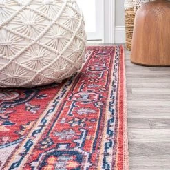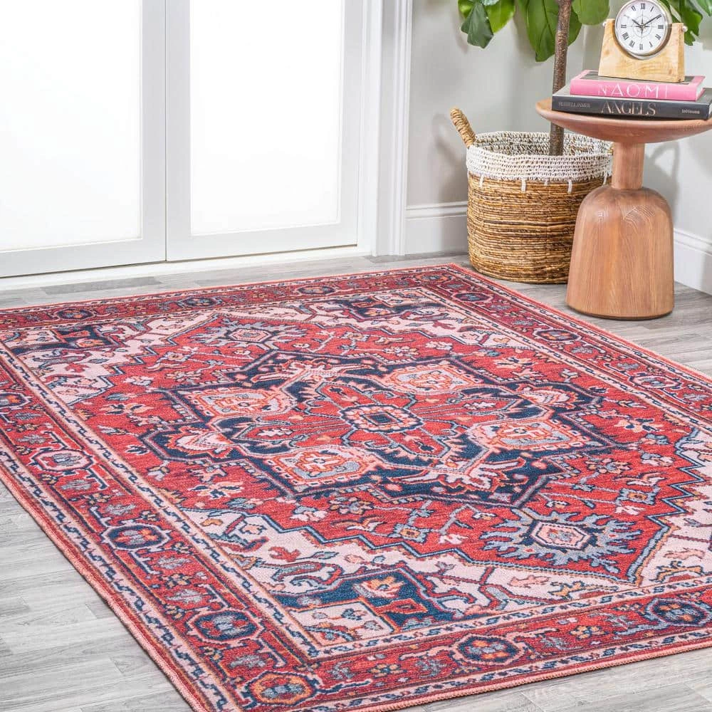 The diamond-shaped medallion in the center of this rug’s design reminds us of ancient geometric tribal rugs. Rich colors add a Bohemian-inspired twist to a classic design. With its pet-friendly pattern, this easy-care rug would be perfect for a dining room, living room, entry, bedroom, or porch.
