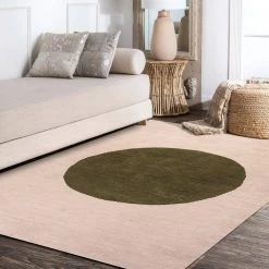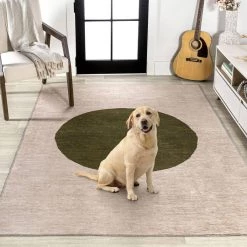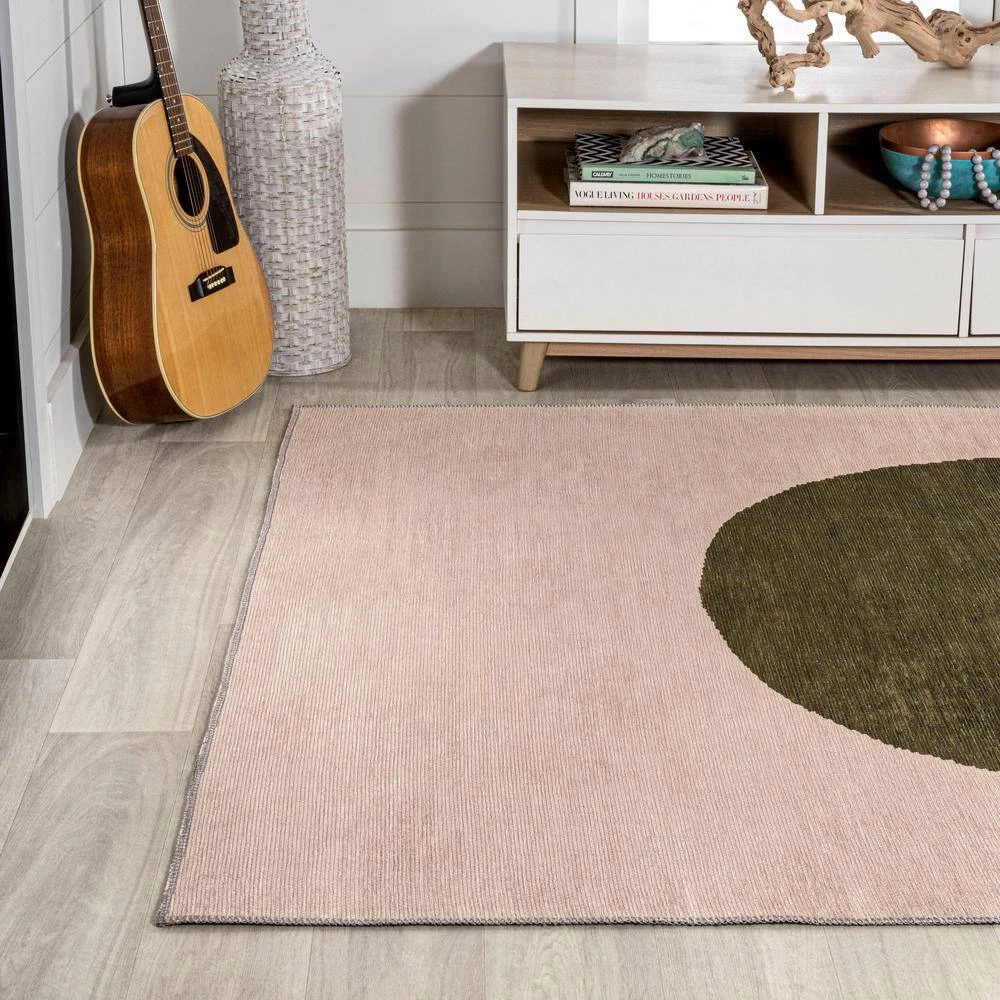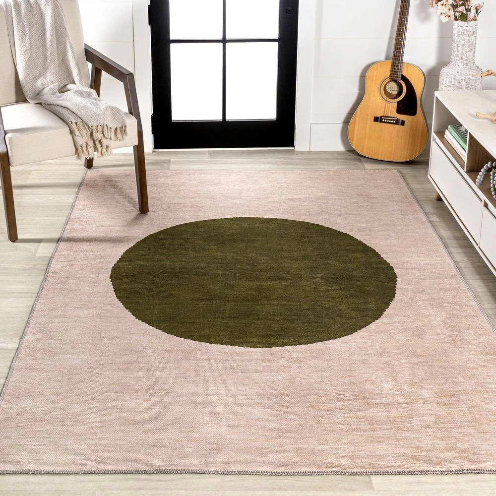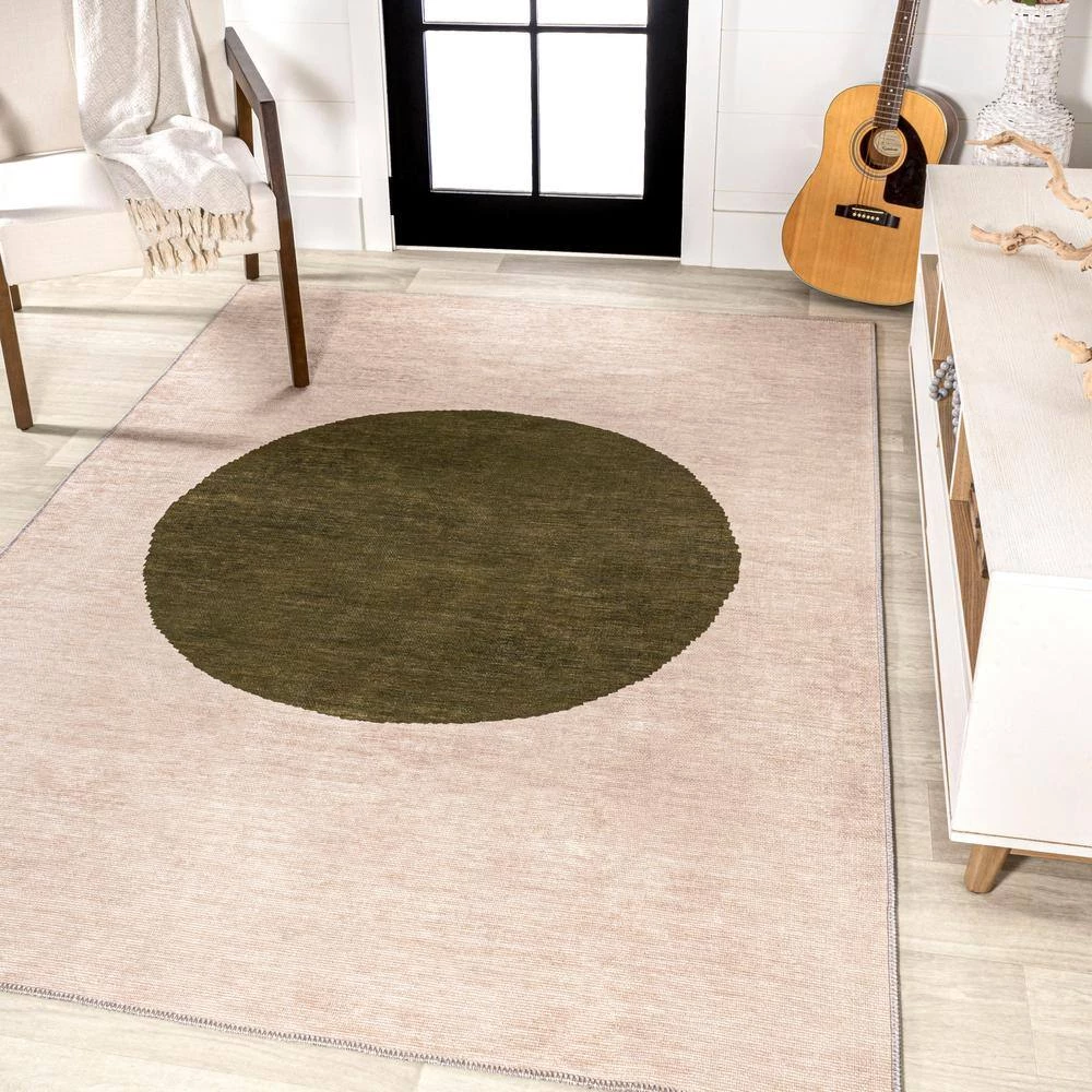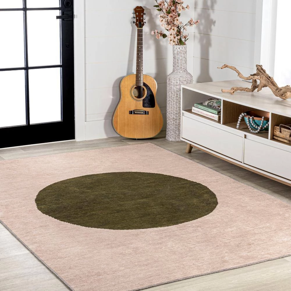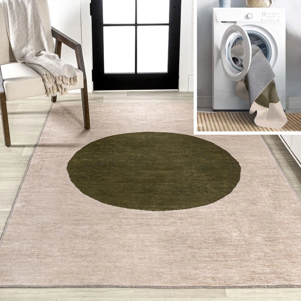 Inspired by Scandinavian design, our machine washable geometric rug has minimalist simplicity. The central circle design is woven in a modern, 2-tone color palette. Add graphic punch to your living room, dining room, entry, or bedroom with this easy-care rug.