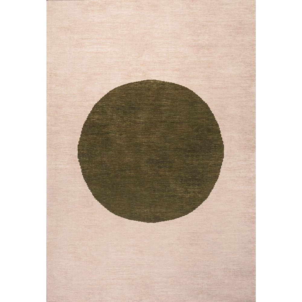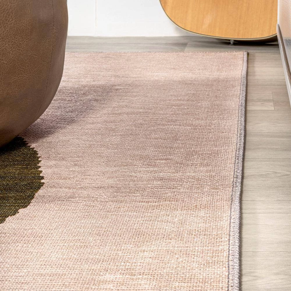 - Olive-brown and ivory color scheme is a modern take on neutral geometric rugs