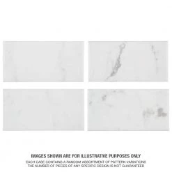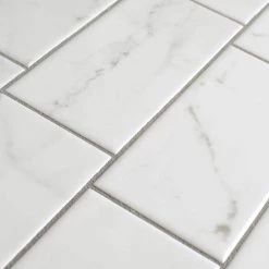 Emulating the timeless beauty of Carrara marble, the Merola Tile Classico Carrara Glossy 3 in. x 6 in. Ceramic Subway Wall Tile captures stunning artistry dating back to Ancient Rome. Set on a glossy white glaze, this marbleized ceramic tile offers an everlasting look to accent your wall installation. Light grey veining striations sporadically flow throughout, adding authenticity to your installation. With a traditional subway format and smooth, even surface, this tile is perfect for creating a sophisticated feel for any setting. This tile is ideal for indoor use, including backsplashes, bathrooms and kitchens. Pair this tile with other Classico Carrara products to complete your own elegant installation. Tile is the better choice for your space. This tile is made from natural ingredients, making it a healthy choice as it is free from allergens, VOCs, formaldehyde and PVC.