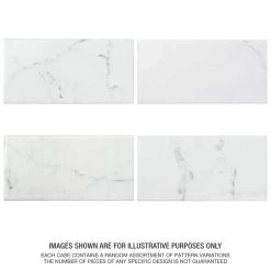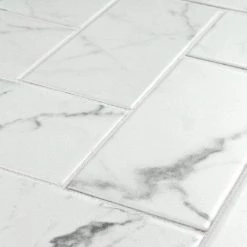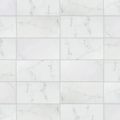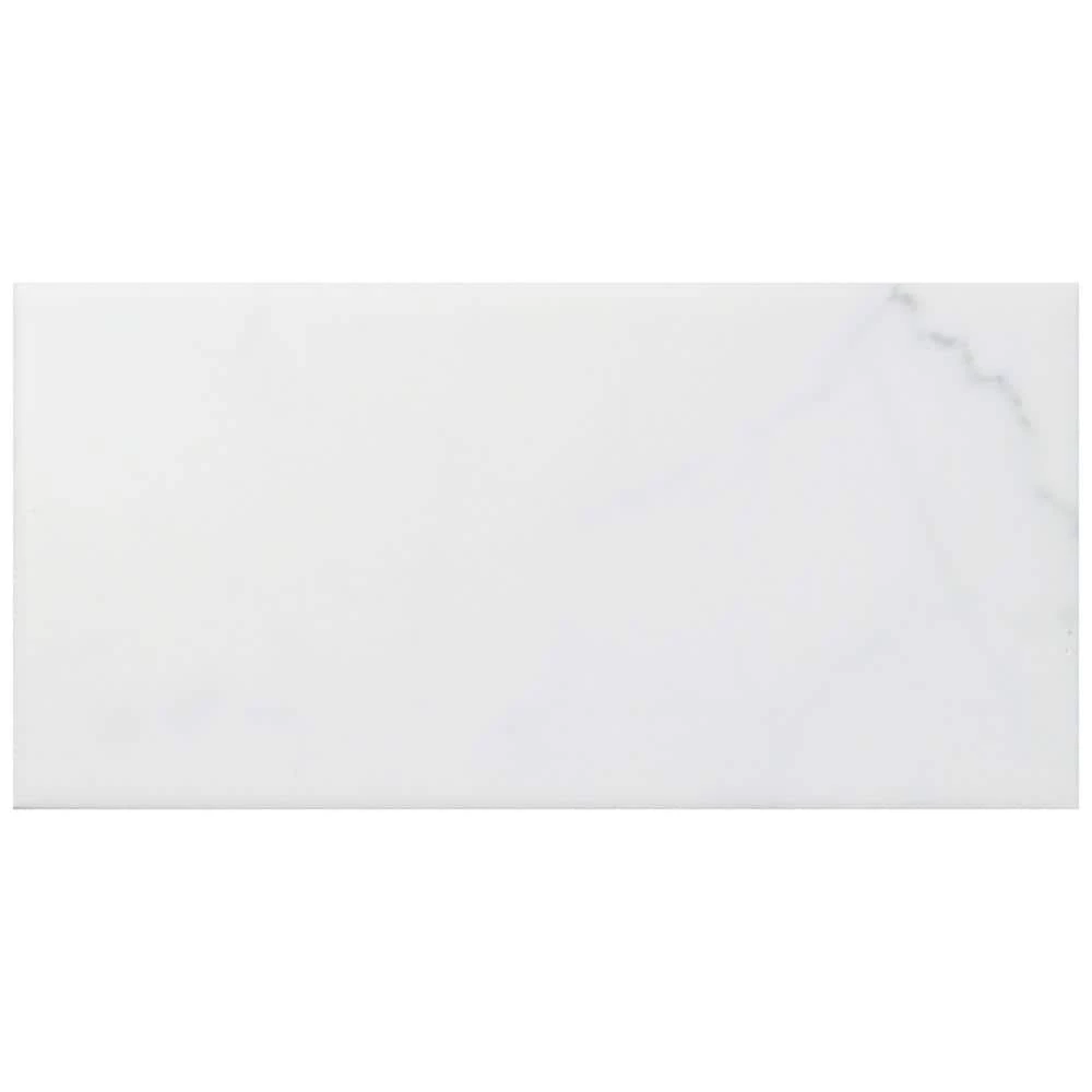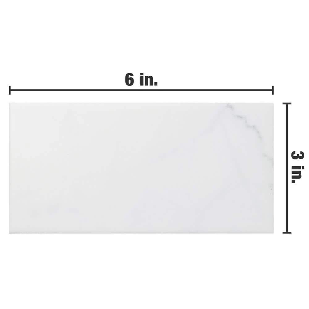 Emulating the timeless beauty of Carrara marble, the Merola Tile Classico Carrara Matte 3 in. x 6 in. Ceramic Wall Subway Tile captures stunning artistry dating back to Ancient Rome. Set on a matte white glaze, this marbleized ceramic tile offers an everlasting look to accent your wall installation. Light grey veining striations sporadically flow throughout, adding authenticity to your installation. With a traditional subway format and smooth, even surface, this tile is perfect for creating a sophisticated feel for any setting. There is variation in the veining patterns found throughout each tile. Pair this tile with other Classico Carrara products to complete your own elegant installation.