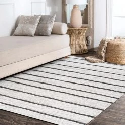 Inspired by Berber rugs, our modern striped rug has a soft, low pile. The scattered stripe pattern recalls the tribal rug designs made popular by mid-century design. With its easy-care fibers, this versatile rug is ideal for a living room, dining room, entry or bedroom.