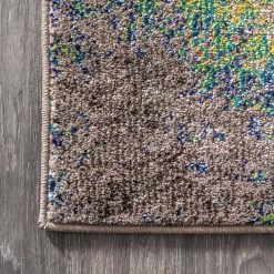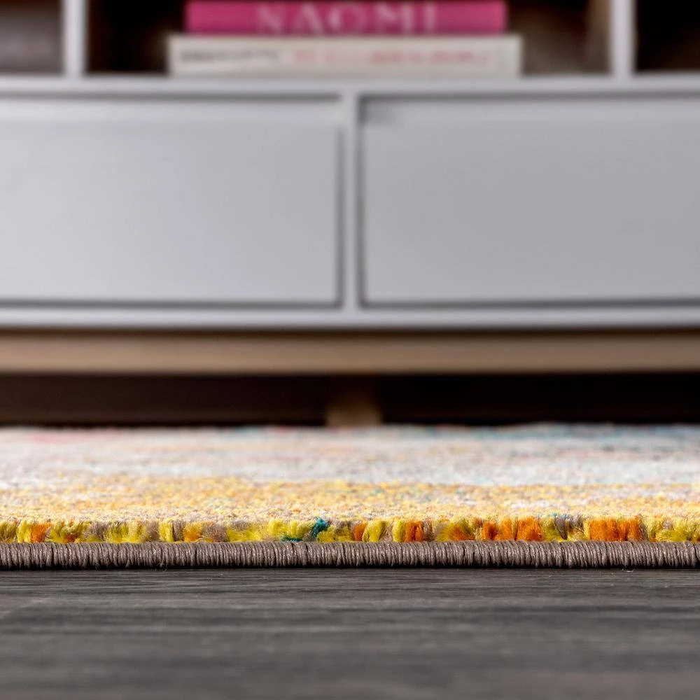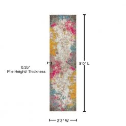 As if dabbed with an artist’s brush right onto your floor, the vibrant colors and soft texture of this rug will have your guests thinking it is a real masterpiece. A contemporary composition of pink, aqua, gray, navy, blue and cream, it is an accent designed to fit many color palettes. Pair with chunky textured fabrics and rattan for a boho look or sleek minimalist furnishings for a more modern take.