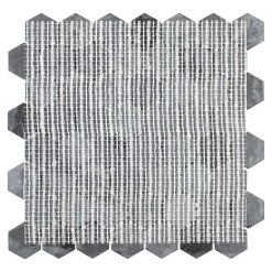 - 11.13 in. width x 11.13 in. length x 8 mm thick mesh-mounted mosaic. 1.5 in. W x 1.5 in. L hexagon pieces