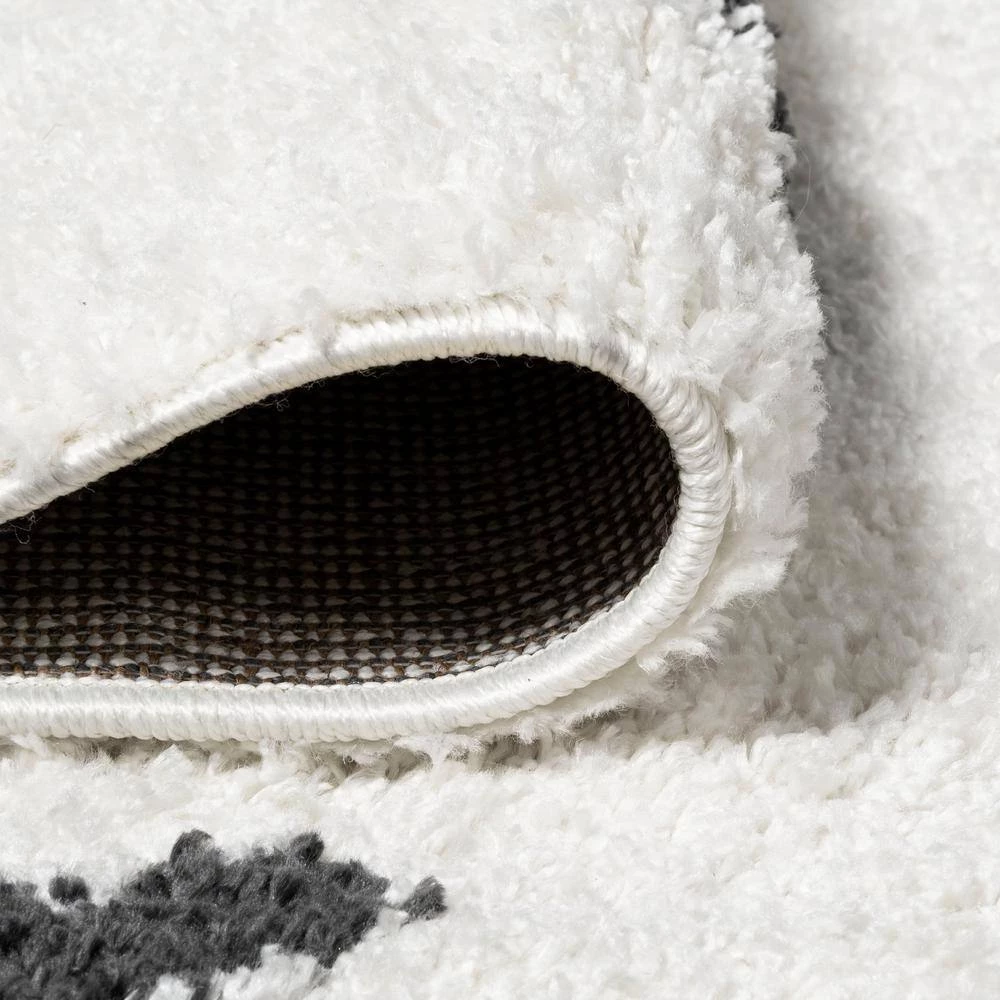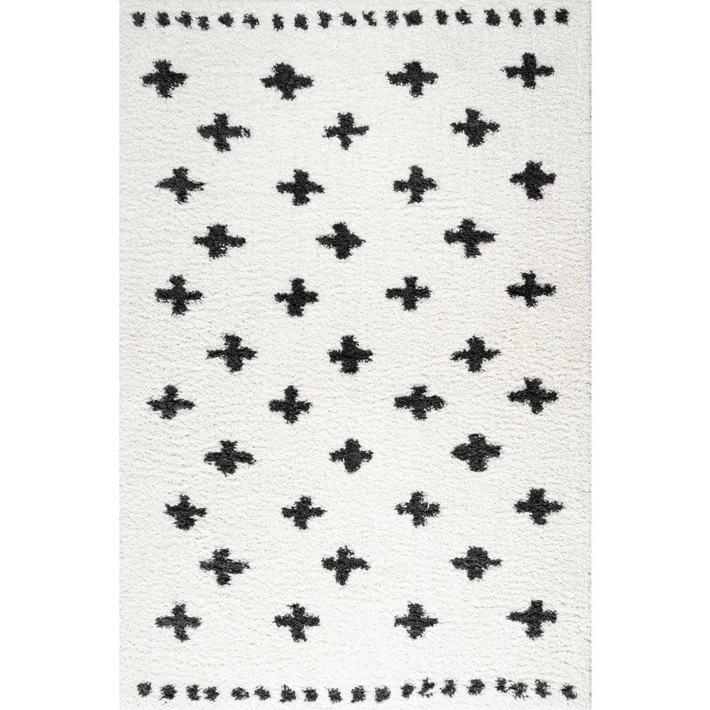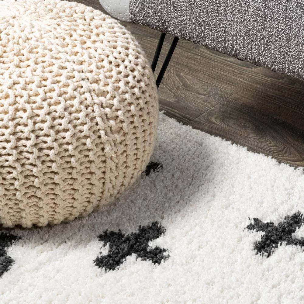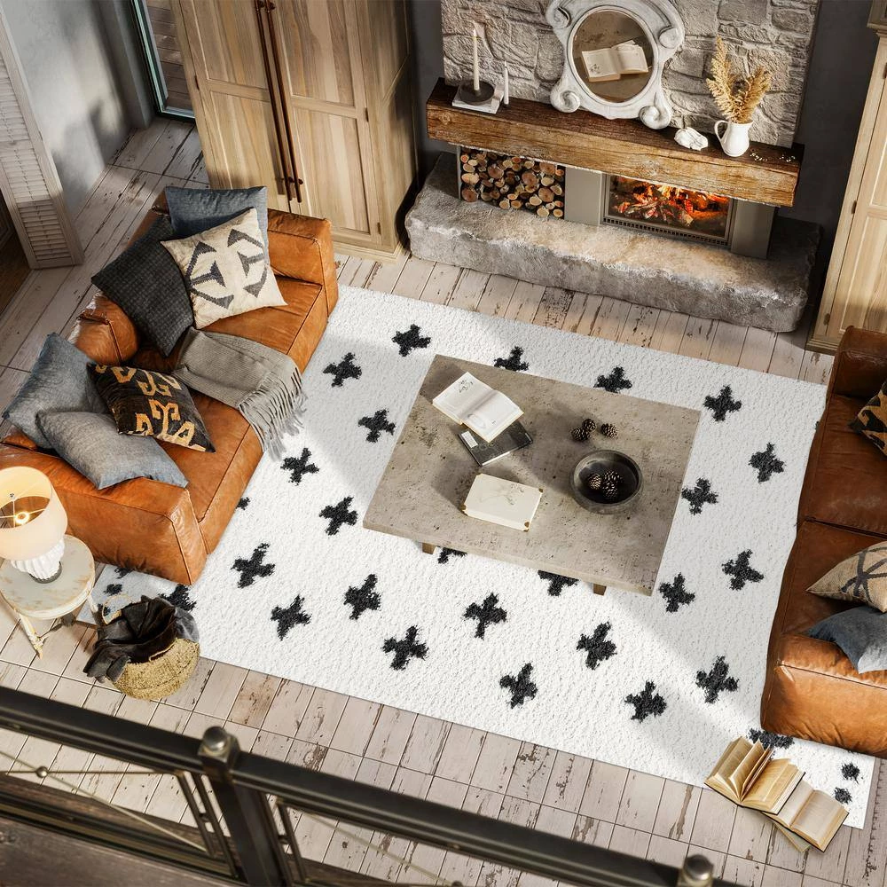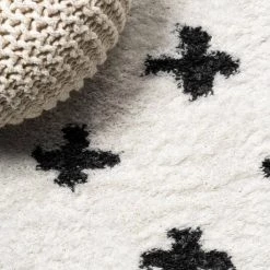 Inspired by vintage Moroccan rugs, our modern geometric rug has a soft, low shag pile. The all-over cross pattern is woven in black on an ivory background; our tribal-inspired design recalls traditional handwoven rugs. Add some Bohemian style to your living room, bedroom, or reading nook with this easy-care rug.