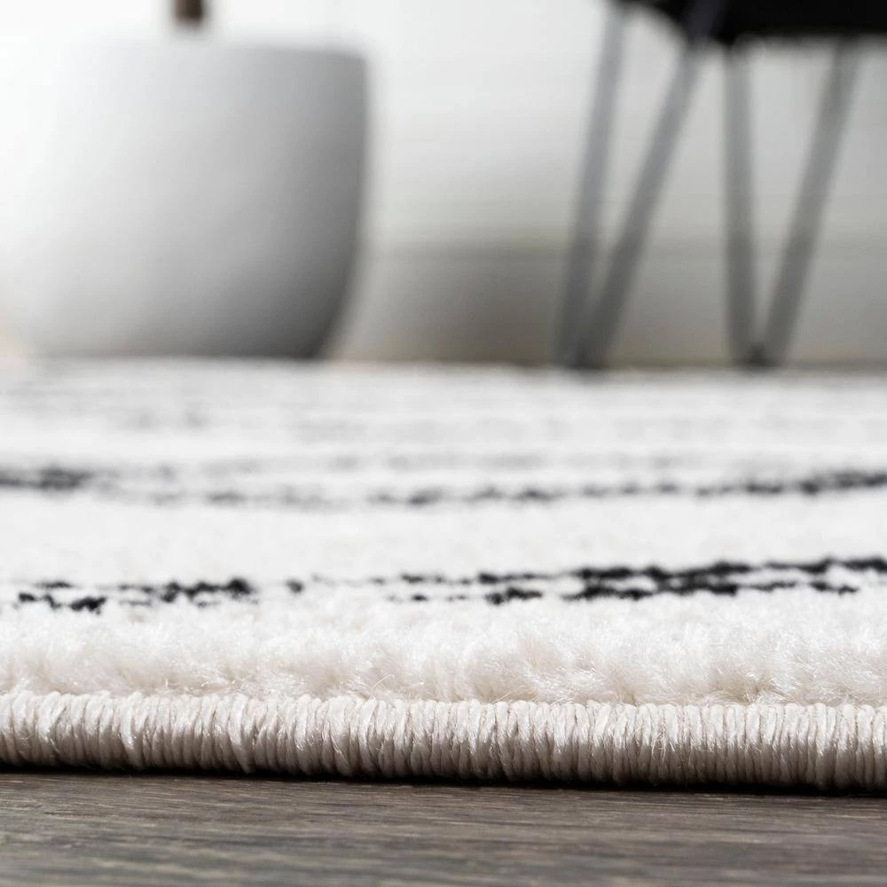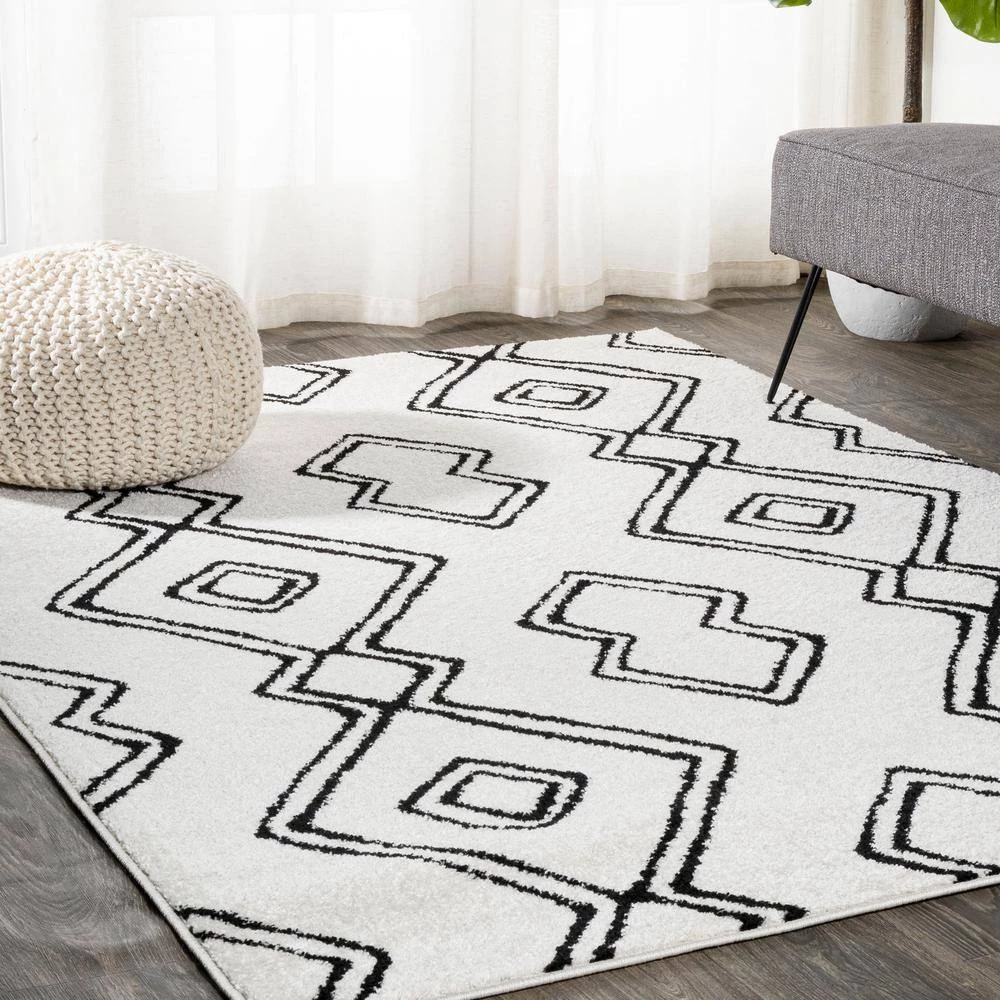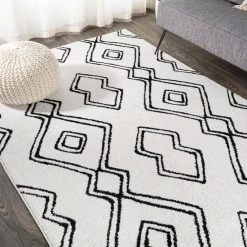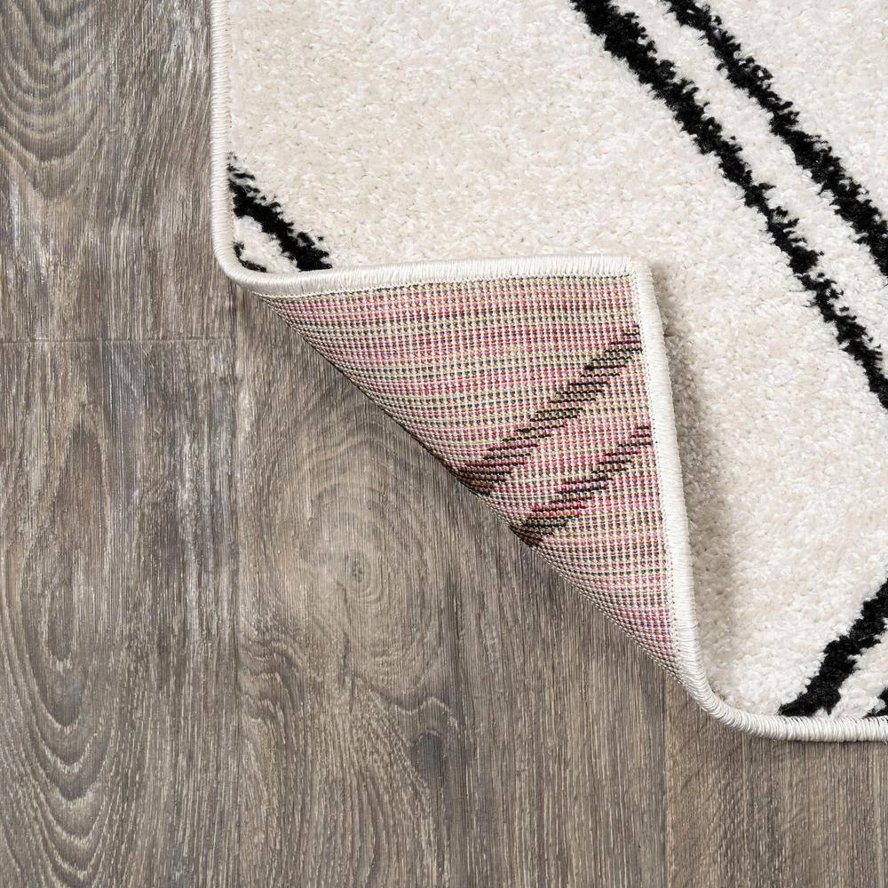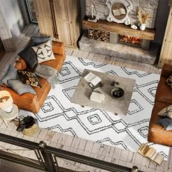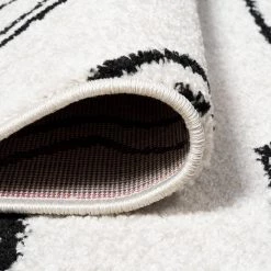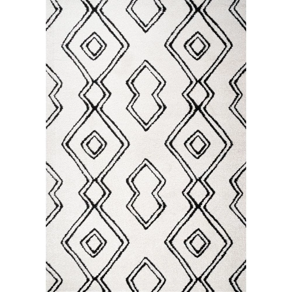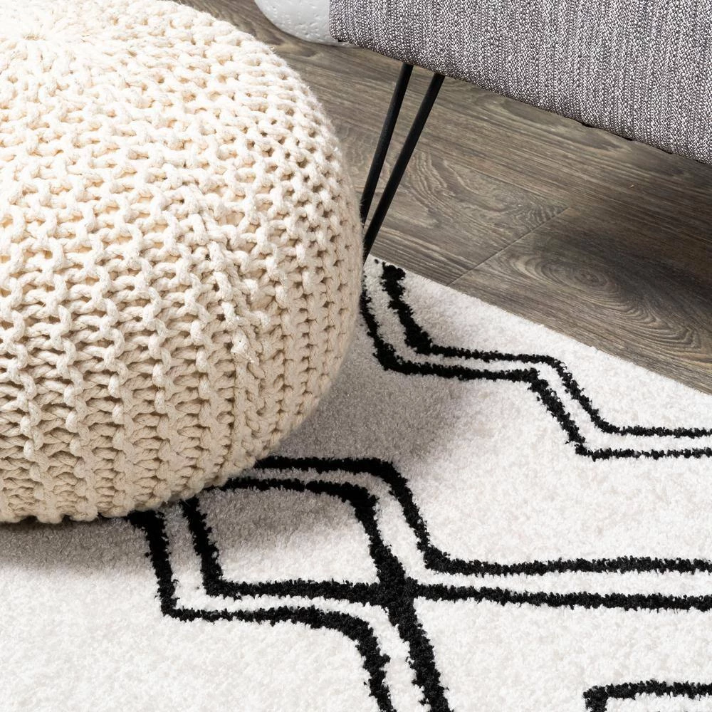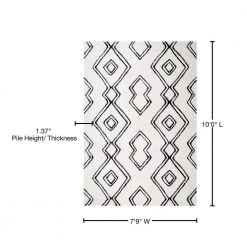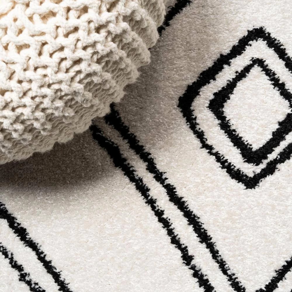 Inspired by vintage Beni Ourain Moroccan rugs, our soft and fluffy shag yarns make it easy to go barefoot. The classic Moroccan pattern has a geometric design of deep black diamonds on a field of ivory. Anchor your Bohemian space; add softness to a bedroom, living room, or cozy reading nook; this is a low-pile shag rug with timeless style.