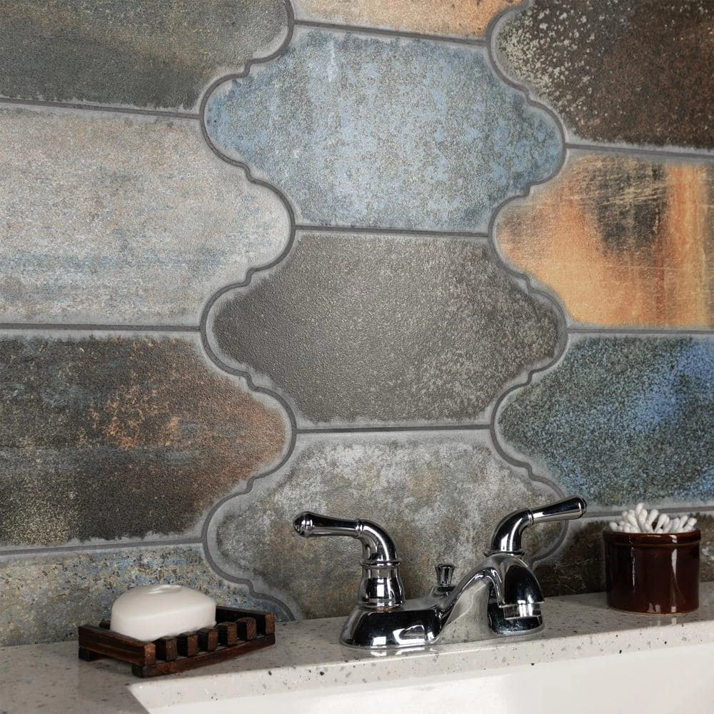 Modern and vintage design elements blend together to create our Dorne Provenzal Mix 6-3/8 in. x 12-7/8 in. Porcelain Floor and Wall Tile. Featuring a unique elongated arabesque shape, this tile is a subtle statement piece created by distressed designs in a variety of earth toned colors. With a slightly textured finish, this unique porcelain tile offers organic, rustic beauty through realistic scuffs and spots that are the marks of well-loved, worn, century-old tile. Available in 29 print variations that are randomly scattered throughout each case, the variation throughout each tile mimics an authentic aged appearance. Its impervious and glazed features make this an ideal tile for indoor and outdoor residential use, including backsplashes, bathrooms, showers and kitchens. Tile is the better choice for your space. This tile is made from natural ingredients, making it a healthy choice as it is free from allergens, VOCs, formaldehyde and PVC.