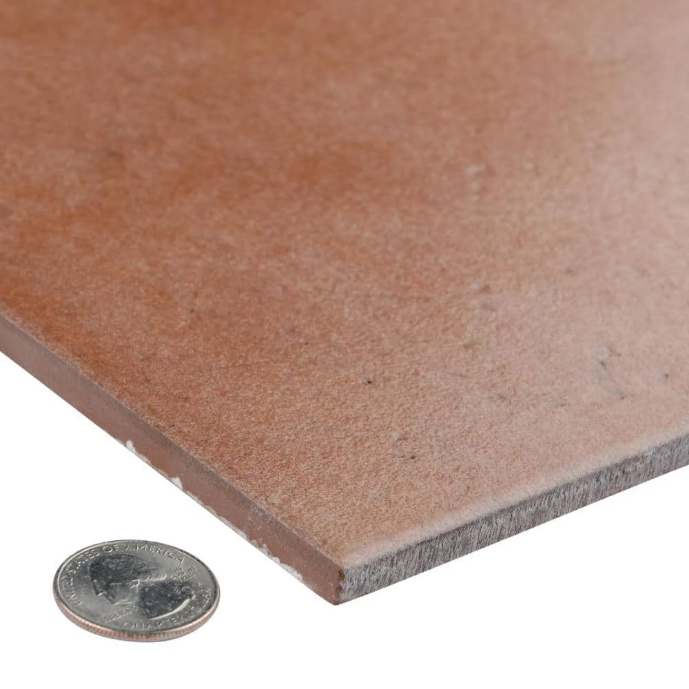 Our Elite Cuero Matte 13 in. x 13 in. brings a sense of visual warmth and comfort into any space. Mimicking a worn cement appearance, this square tile features faded terracotta color tones and a matte finish. With a slightly textured surface, this ceramic tile offers charming, rustic beauty through realistic scuffs and spots that are the marks of well-loved, worn, century-old tile. Available in infinite distressing variations that are randomly distributed throughout each case, the variation throughout each tile creates a truly authentic aged appearance. Its glazed and durable features make it an ideal choice for indoor floor and wall installations including kitchens, bathrooms, backsplashes, showers and entryways. Tile is the better choice for your space. This tile is made from natural ingredients, making it a healthy choice as it is free from allergens, VOCs, formaldehyde and PVC.