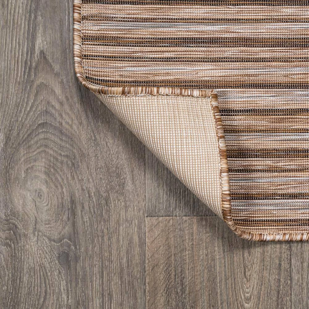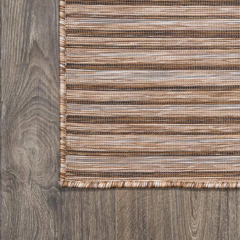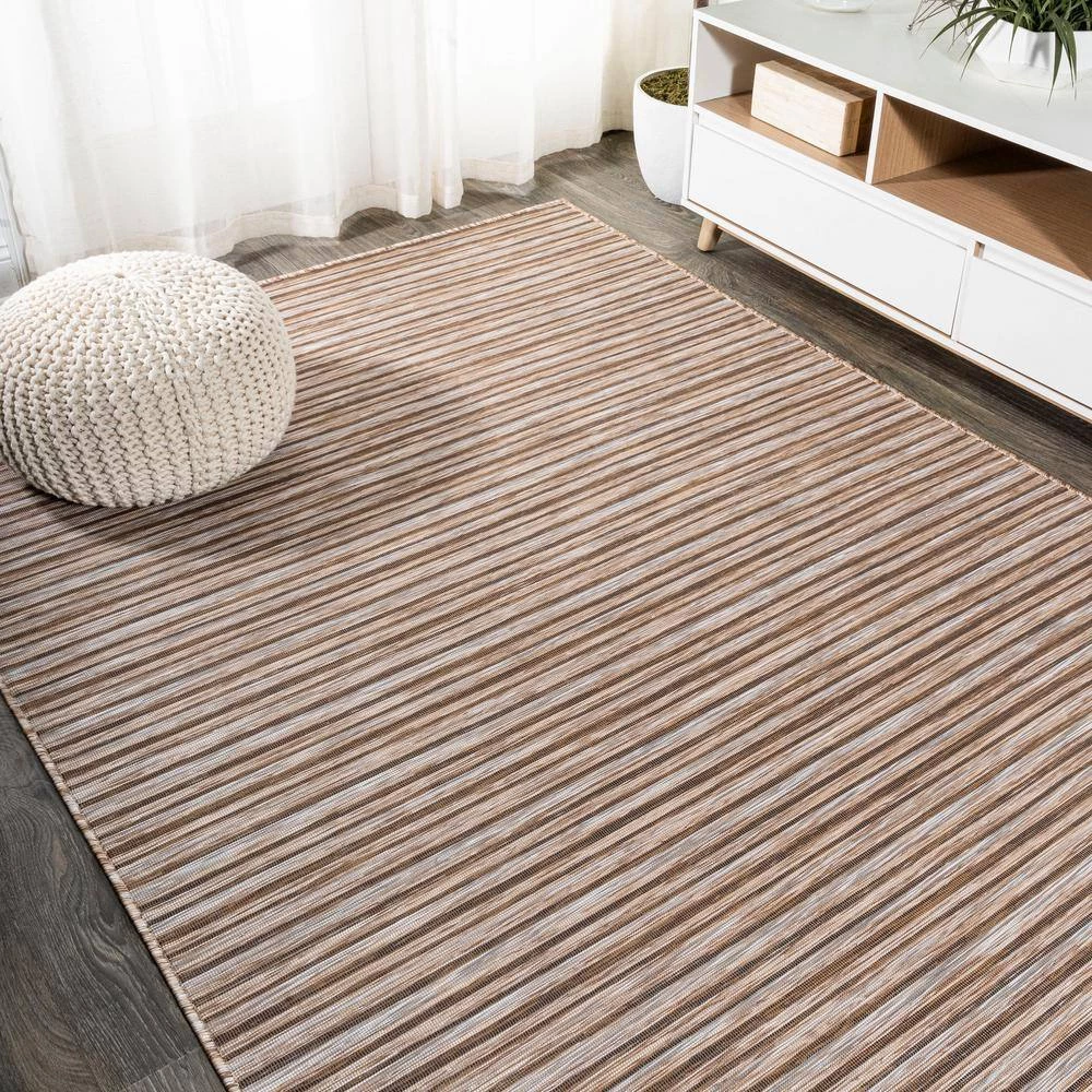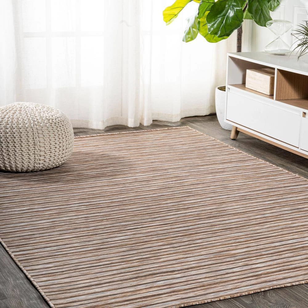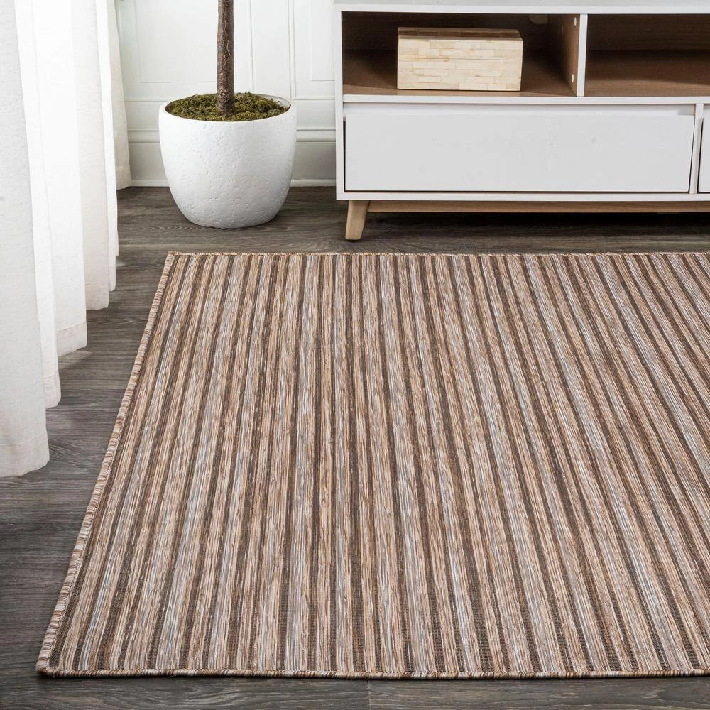 Anchor your mid-century modern, urban contemporary, or farmhouse-inspired space with our flat-weave striped rug. The mingled natural brown stripe design is practical for high-traffic areas with kids and pets. Add pattern to a living room, dining room, entry, office or bedroom with this easy-care synthetic rug.