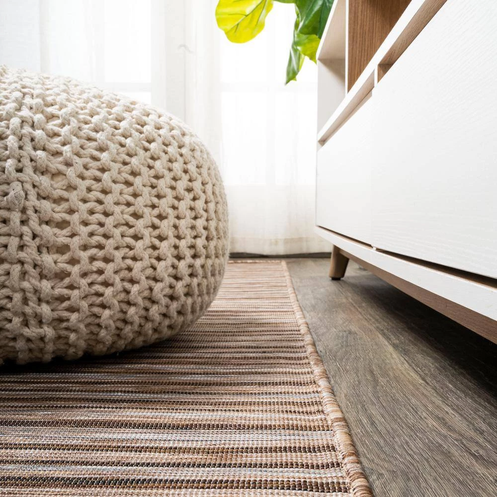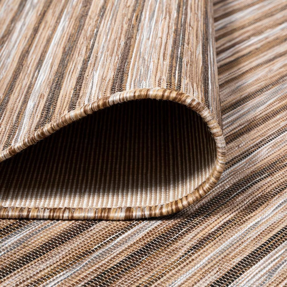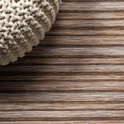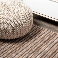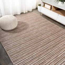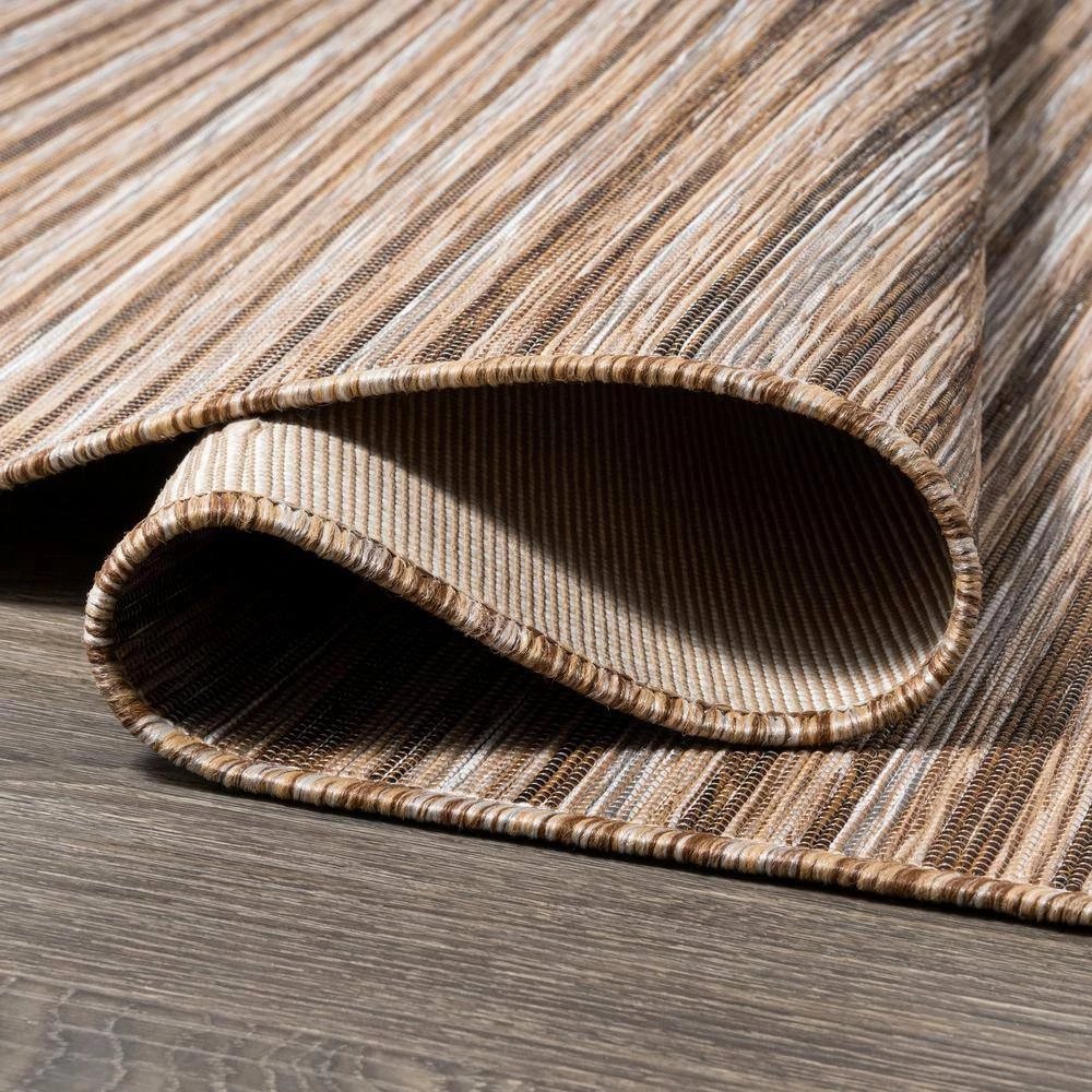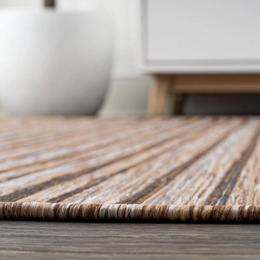 Anchor your mid-century modern, urban contemporary, or farmhouse-inspired space with our flat-weave striped rug. The mingled natural brown stripe design is practical for high-traffic areas with kids and pets. Add pattern to a living room, dining room, entry, office or bedroom with this easy-care synthetic rug.