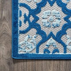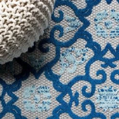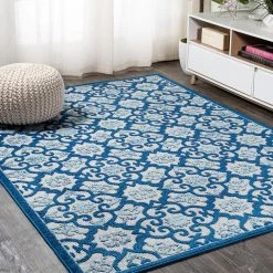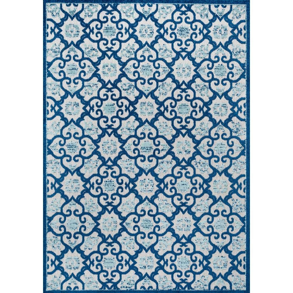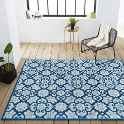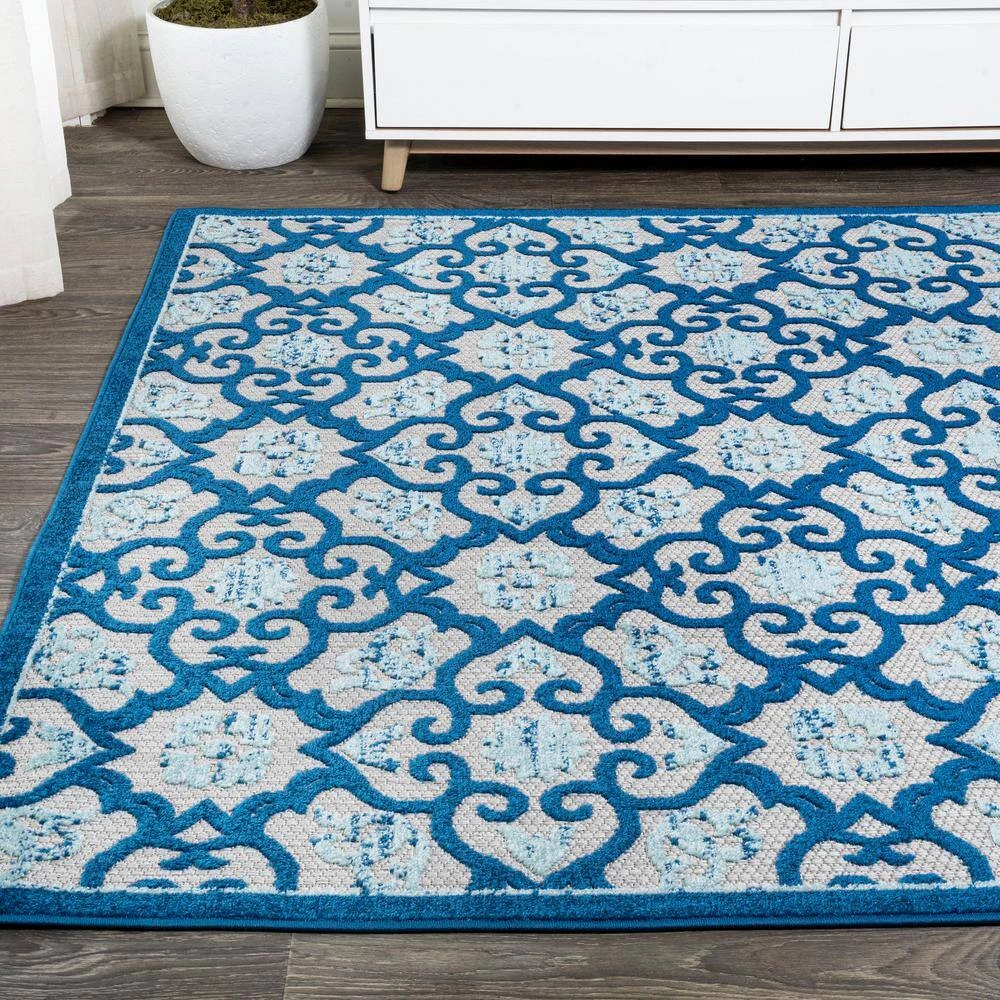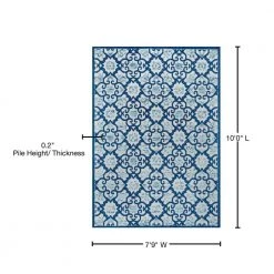 Inspired by antique Mediterranean tile patterns, this indoor-outdoor rug adds classic style to a kitchen, living room, bedroom or dining room. The all-over design is an easy maintenance solution for homes with kids and pets. Outdoors, this trellis patterned rug adds well-traveled chic to a porch or patio.
