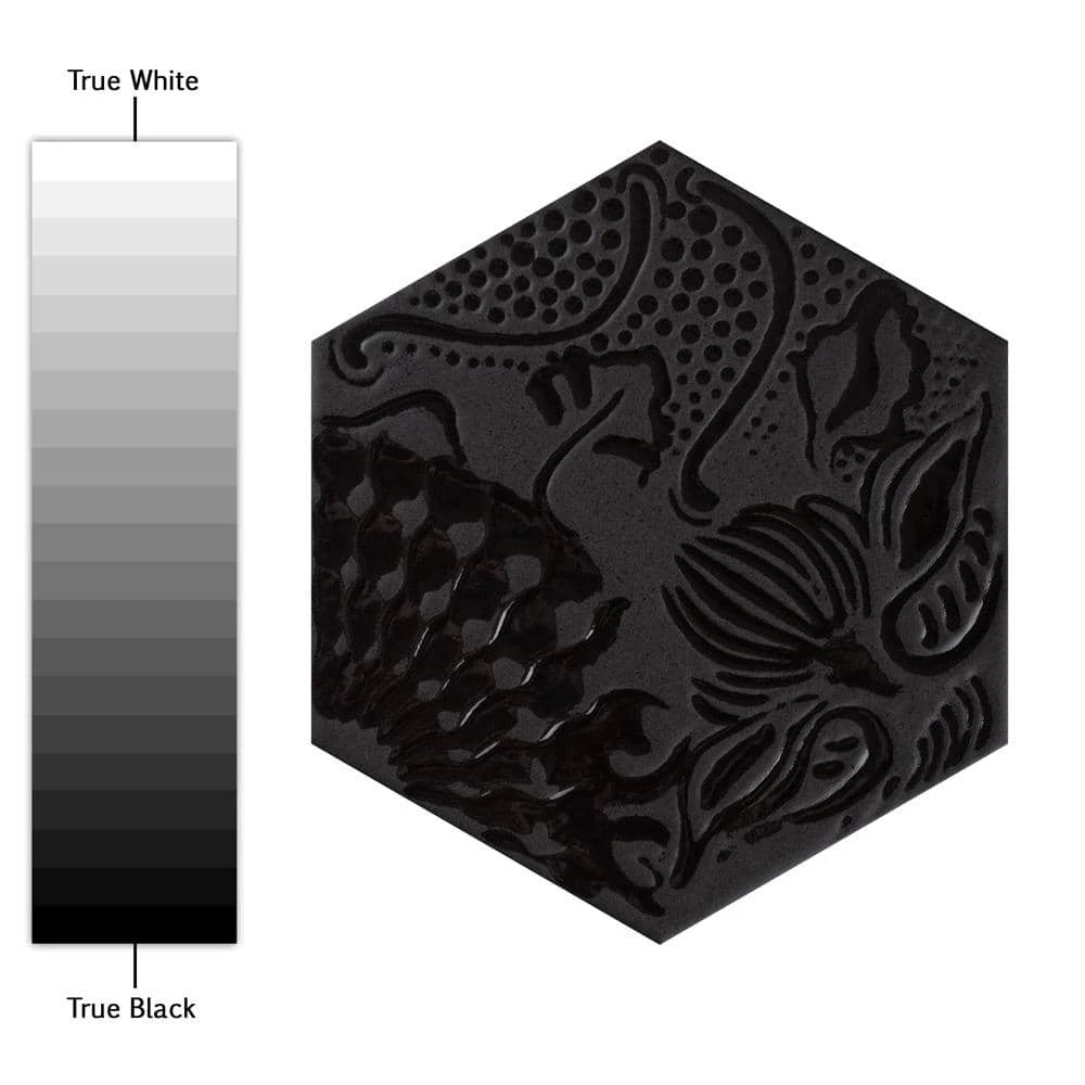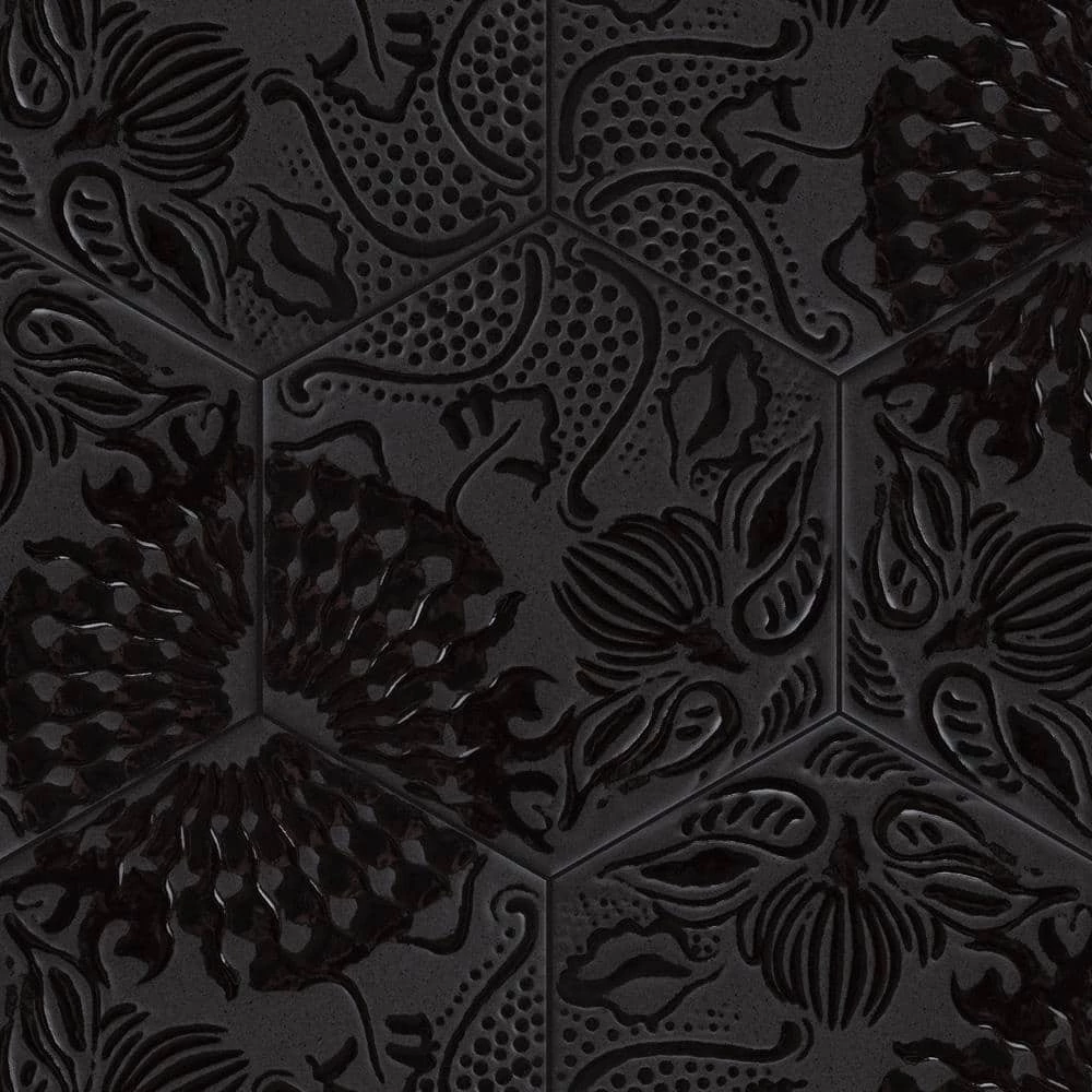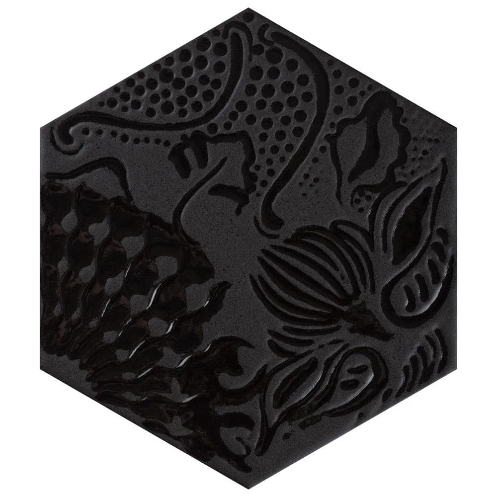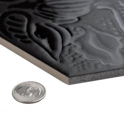 Inspired by renowned Spanish Catalan Architect Antoni Gaudi, our Gaudi Lux Hex Black 8-5/8 in. x 9-7/8 in. Porcelain Floor and Wall Tile offers patterned reflections that feature a combination of original designs and his passion for nature in a bold black color. These enlarged hexagons have a handmade appearance through textured designs and subtle imperfections that make it look like each tile was handcrafted. These dimensional porcelain tiles have an irregular embossed surface with a mixed finish, providing a beautiful visual experience. Its impervious and frost-resistant features make this an ideal tile for both indoor and outdoor residential use, including backsplashes, bathrooms, showers and kitchens. This tile is a perfect choice on its own or paired with other products in the Gaudi Collection. Tile is the better choice for your space. This tile is made from natural ingredients, making it a healthy choice as it is free from allergens, VOCs, formaldehyde and PVC.