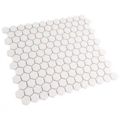 Reminiscent of 1930s and 1940s era design, the Merola Tile Gotham Hex Antique White 10-1/4 in. x 11-3/4 in. x 5 mm Porcelain Unglazed Mosaic Tile is a spectacular choice for nearly any space. This robust hexagon mosaic is unglazed, offering a uniform antique white color through the entire chip. There is slight texture throughout the surface, adding dimension to each sheet. This impervious tile meets ADA Guidelines, making this tile an optimal choice for nearly any installation, including showers, kitchens and exterior use. Mix and match with other Gotham products to craft a distinctive design or use it alone as a cohesive look.