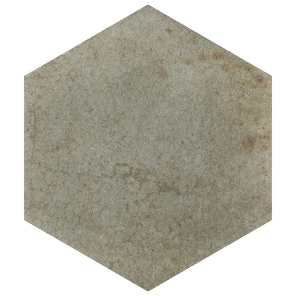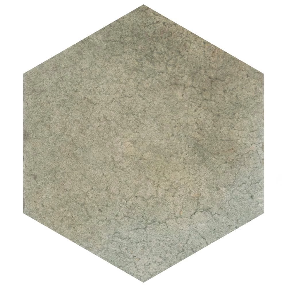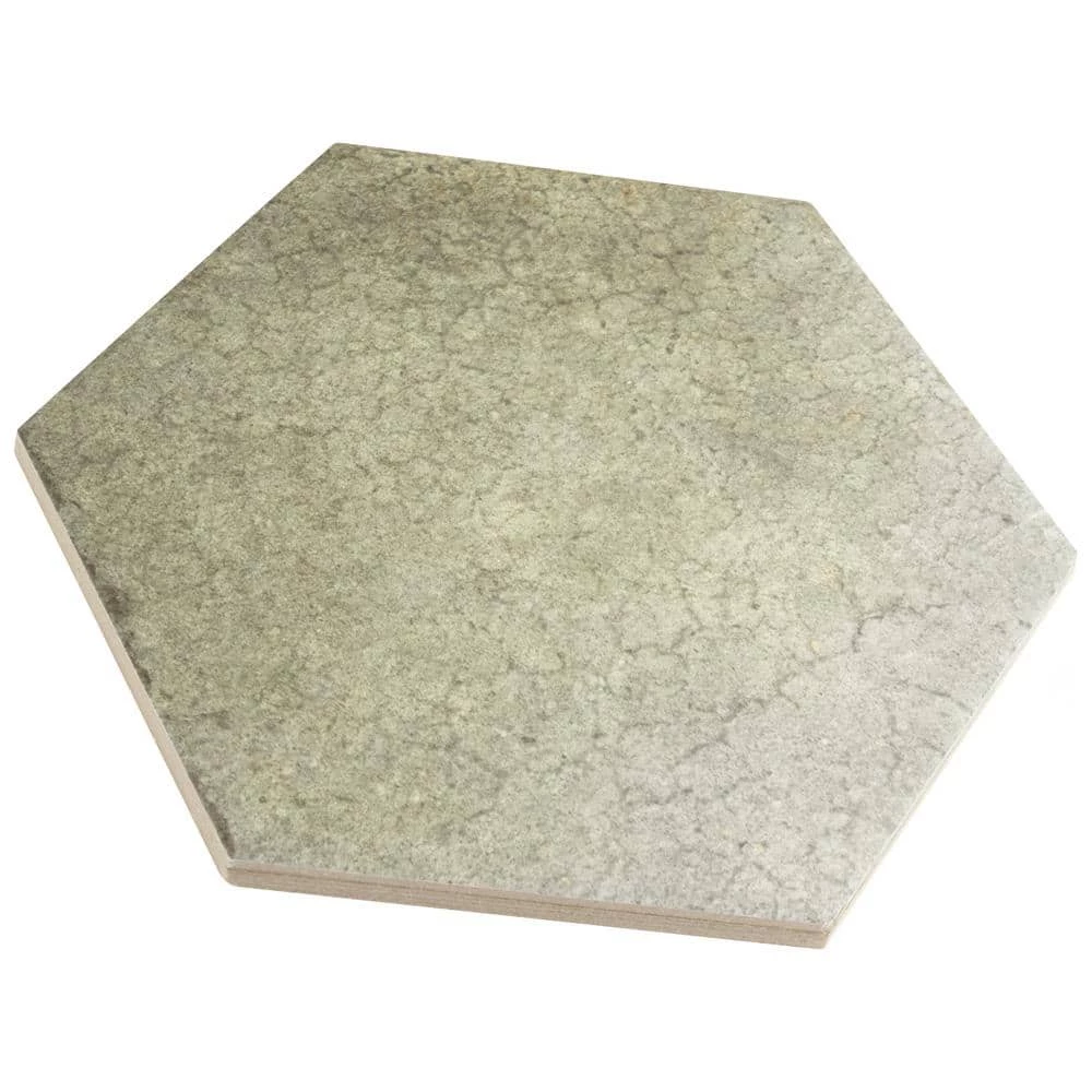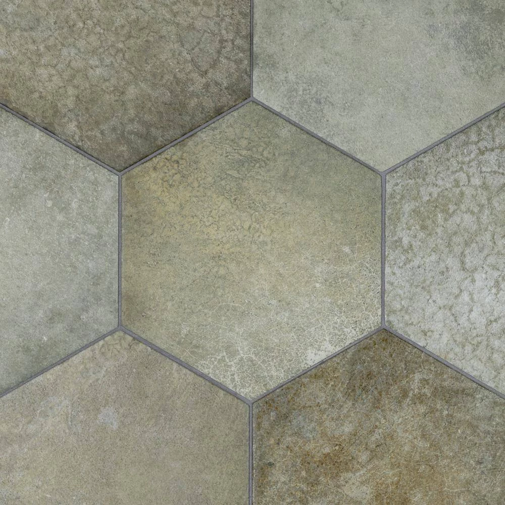 Capturing the rustic appearance of natural stone in a durable porcelain material, our Heritage Hex Jungle 7 in. x 8 in. Porcelain Floor and Wall Tile brings the irreplaceable beauty of nature into any living space. This matte hexagon tile features natural mineral-like pattern variations in faded light and dark olive green hues, replicating the appearance of aged stone. Composed of rich detail and a slightly textured surface, this unique porcelain tile offers decorative, rustic beauty through realistic scuffs and spots that are the marks of well-loved, worn, century-old tile. This trendsetting display of stone-look design is visually appealing and versatile, and blends beautifully with a range of styles from vintage industrial to modern day. Its impervious, frost-resistant and durable features make this an ideal choice for both commercial and residential indoor and outdoor installations including, kitchens, bathrooms, backsplashes, showers, hallways, entryways, patios and fireplace facades. Tile is the better choice for your space. This tile is made from natural ingredients, making it a healthy choice as it is free from allergens, VOCs, formaldehyde and PVC.