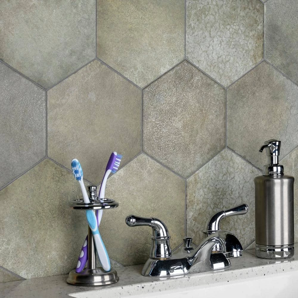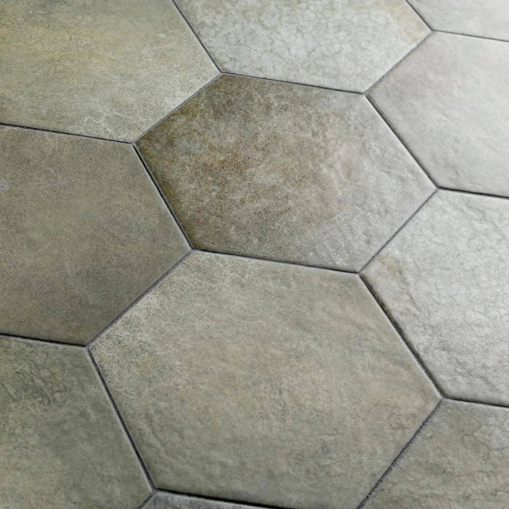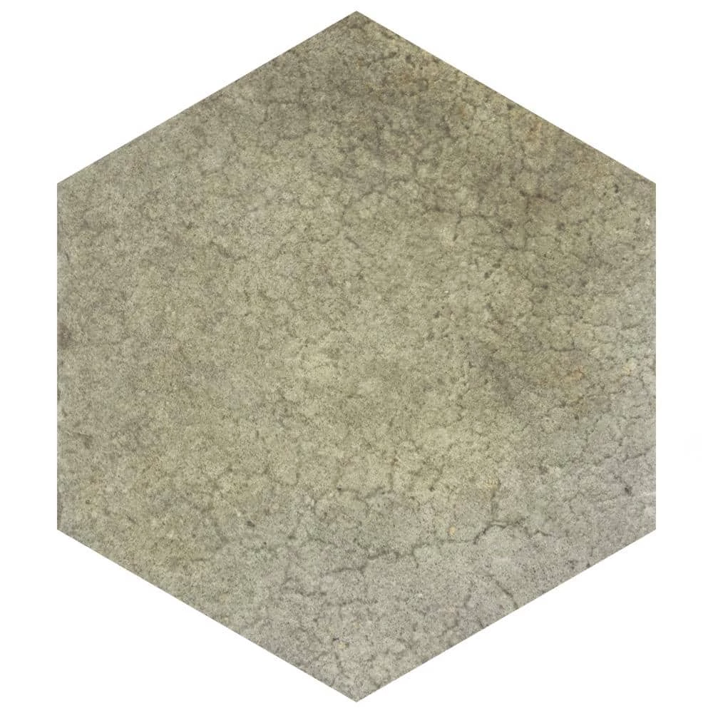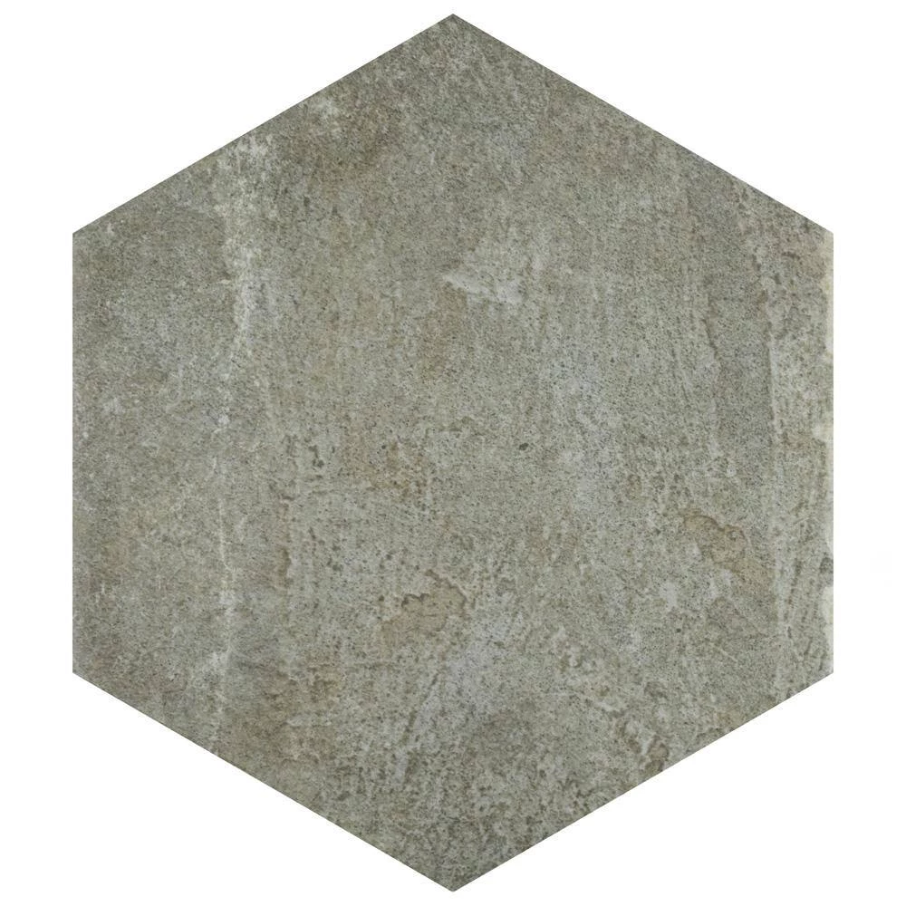 Capturing the rustic appearance of natural stone in a durable porcelain material, our Heritage Hex Jungle 7 in. x 8 in. Porcelain Floor and Wall Tile brings the irreplaceable beauty of nature into any living space. This matte hexagon tile features natural mineral-like pattern variations in faded light and dark olive green hues, replicating the appearance of aged stone. Composed of rich detail and a slightly textured surface, this unique porcelain tile offers decorative, rustic beauty through realistic scuffs and spots that are the marks of well-loved, worn, century-old tile. This trendsetting display of stone-look design is visually appealing and versatile, and blends beautifully with a range of styles from vintage industrial to modern day. Its impervious, frost-resistant and durable features make this an ideal choice for both commercial and residential indoor and outdoor installations including, kitchens, bathrooms, backsplashes, showers, hallways, entryways, patios and fireplace facades. Tile is the better choice for your space. This tile is made from natural ingredients, making it a healthy choice as it is free from allergens, VOCs, formaldehyde and PVC.