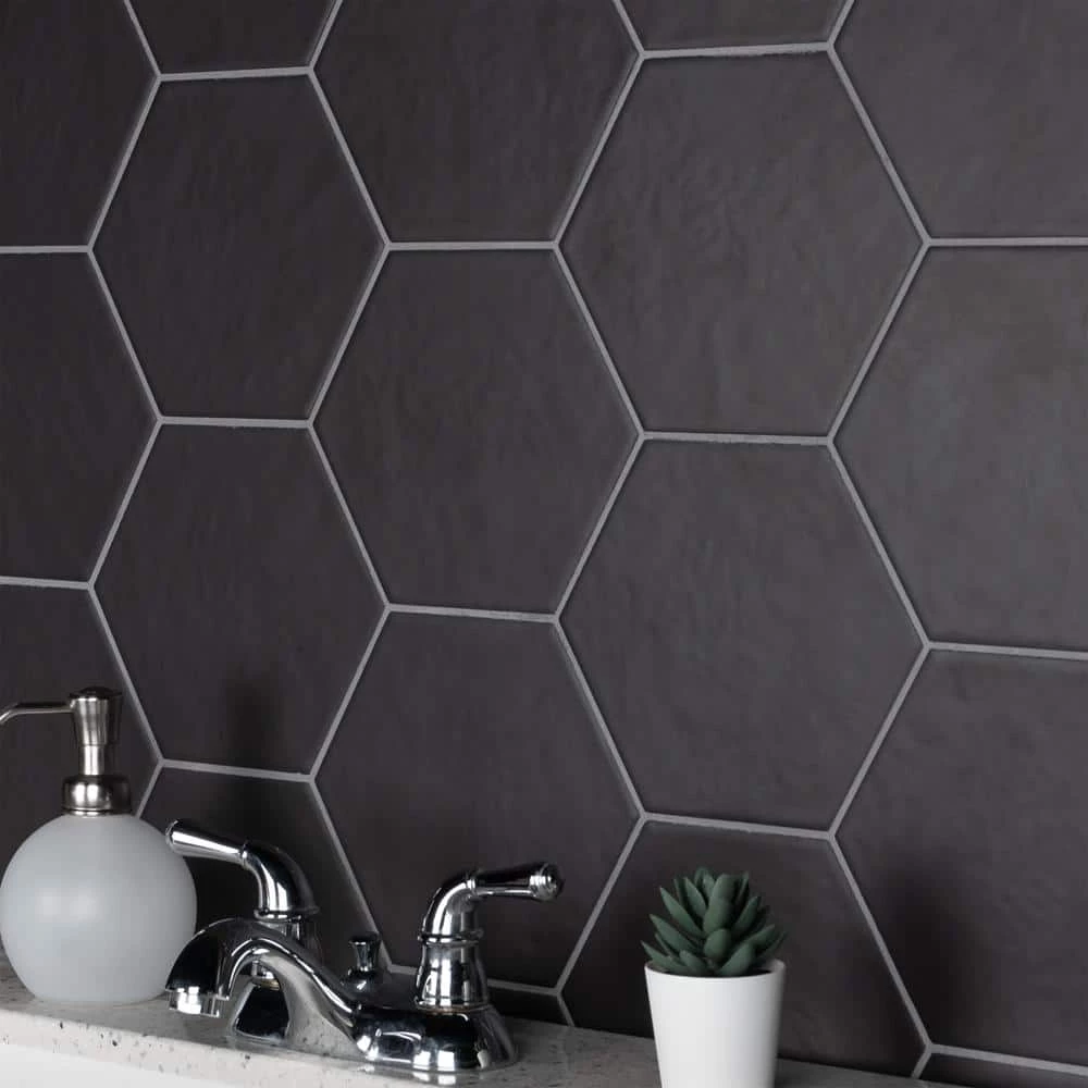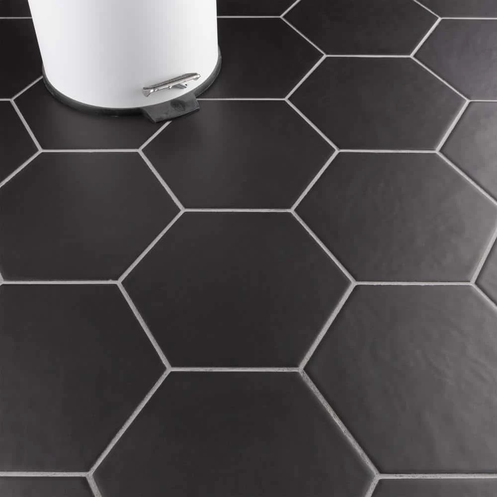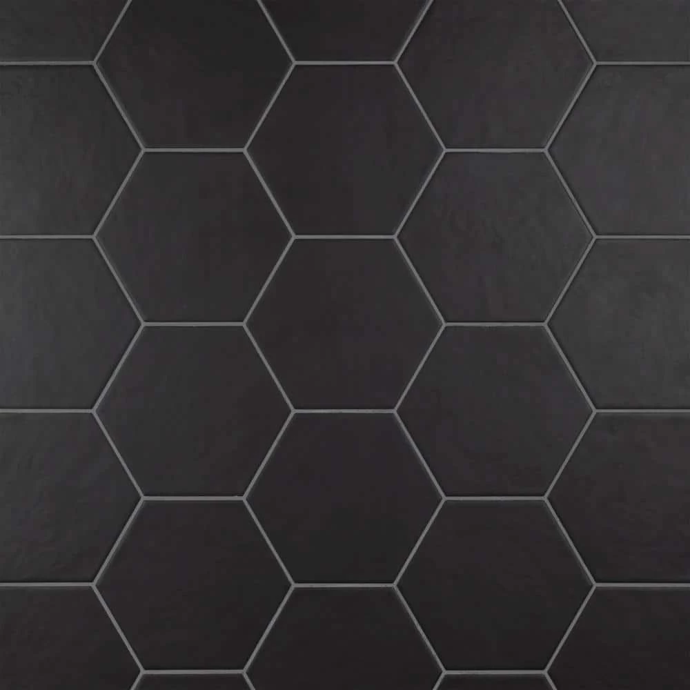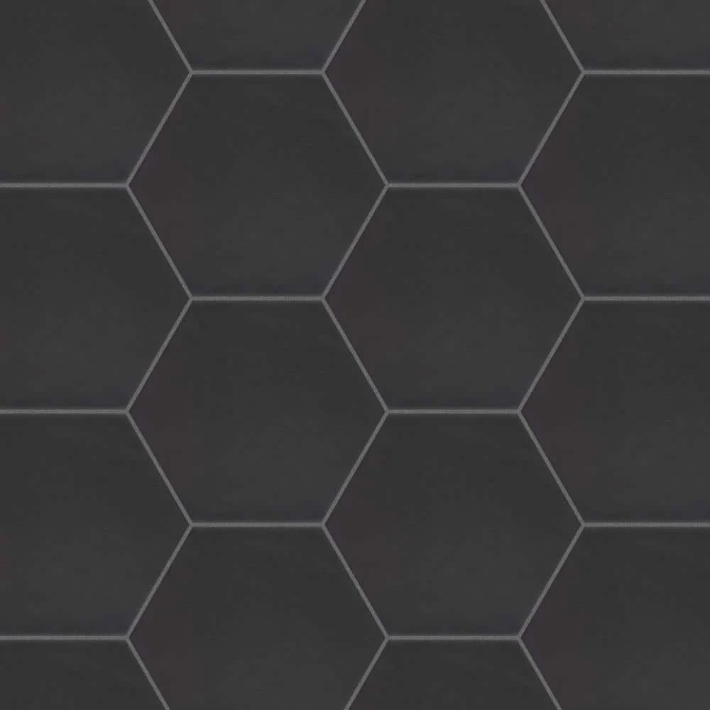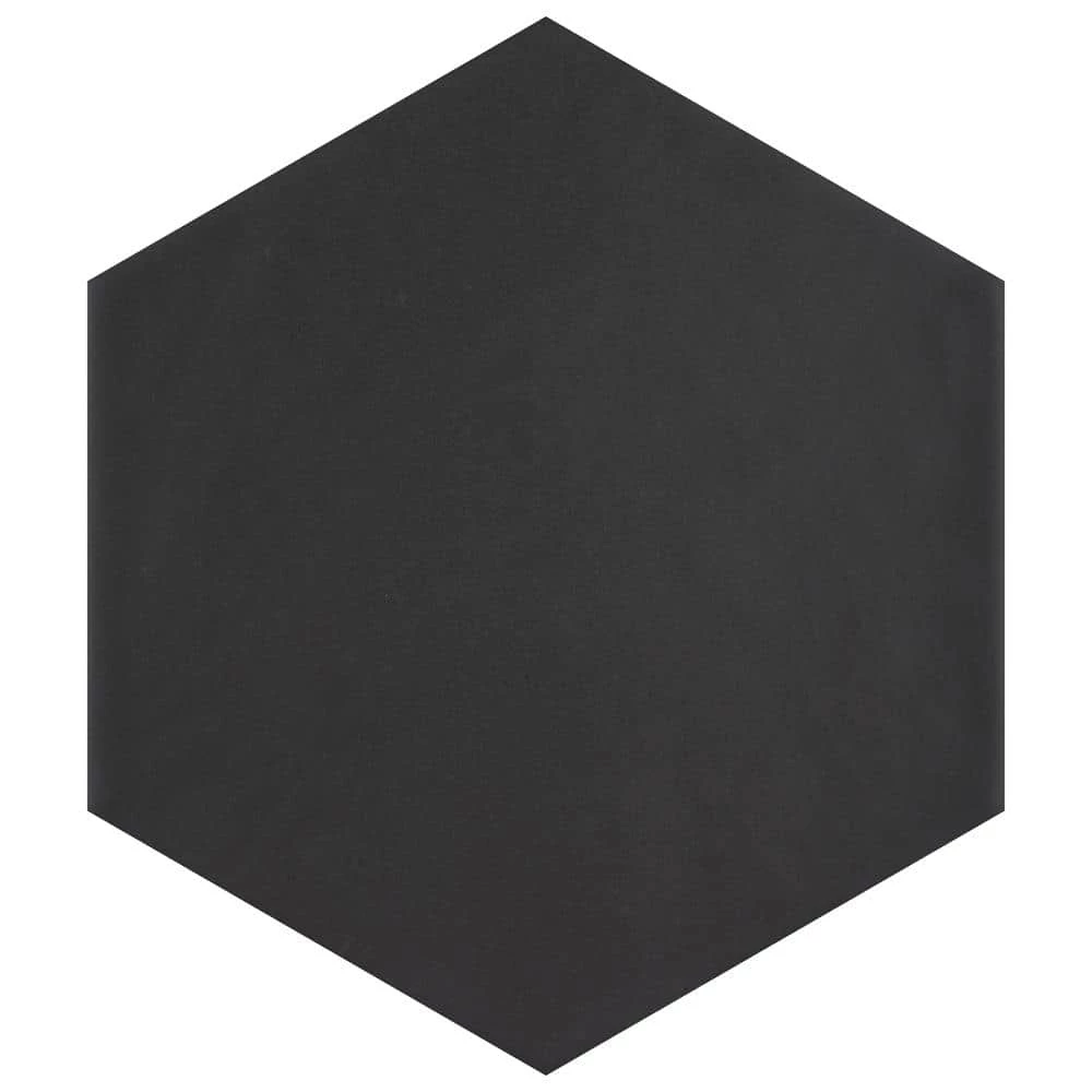 The Merola Tile Hexatile Matte Nero 7 in. x 8 in. Porcelain Floor and Wall Tile features a low sheen and matte finish to offer your space a traditional look and feel. Its glazed, slightly textured finish offers a uniform appearance. This hexagonal tile flooring is crafted from frost-resistant solid porcelain suitable for interior and some exterior applications. This impervious flooring features water absorption of less than 0.5%. Ideal for installing in kitchens, halls, corridors and balconies, this wall tile suits modern design schemes or historical renovations.