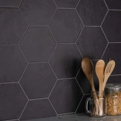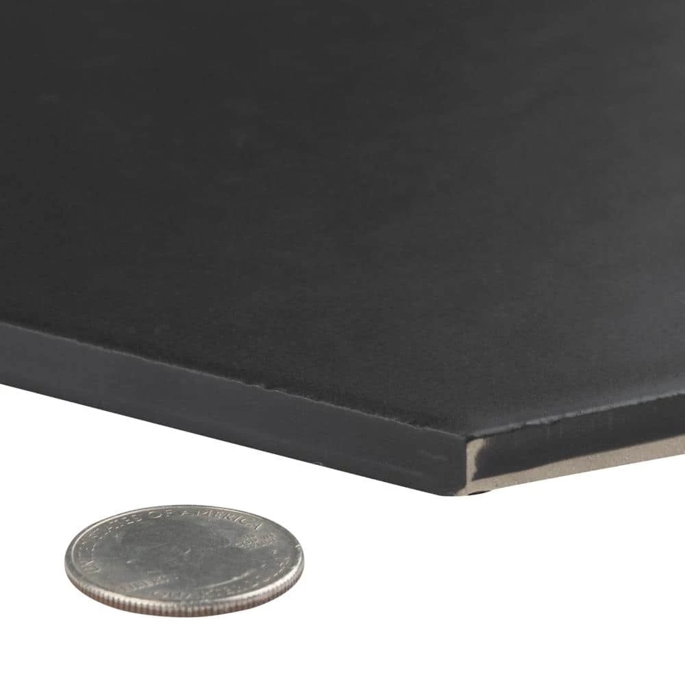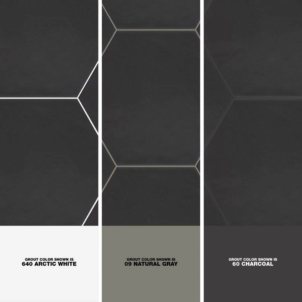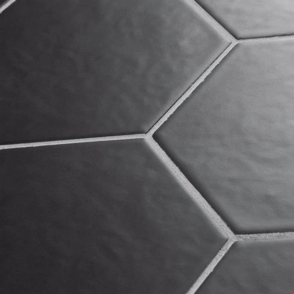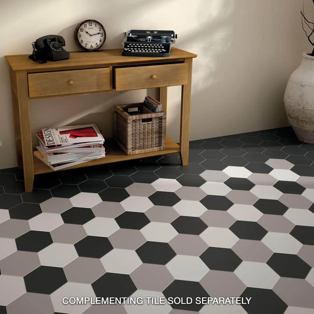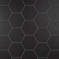 The Merola Tile Hexatile Matte Nero 7 in. x 8 in. Porcelain Floor and Wall Tile features a low sheen and matte finish to offer your space a traditional look and feel. Its glazed, slightly textured finish offers a uniform appearance. This hexagonal tile flooring is crafted from frost-resistant solid porcelain suitable for interior and some exterior applications. This impervious flooring features water absorption of less than 0.5%. Ideal for installing in kitchens, halls, corridors and balconies, this wall tile suits modern design schemes or historical renovations.
